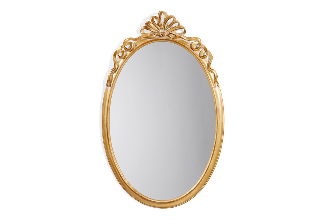 The mirror is from Italian producer Roberto Giovannini. Oval mirror in a frame made of natural wood. Finish - gold foil and artificial aging. Decorative elements - hand-carved. Colors to choose in stock. Mirror with tapes made in the classic style. A great decoration for Your living room, combining tradition and design of the nineteenth century, Neoclassicism.
