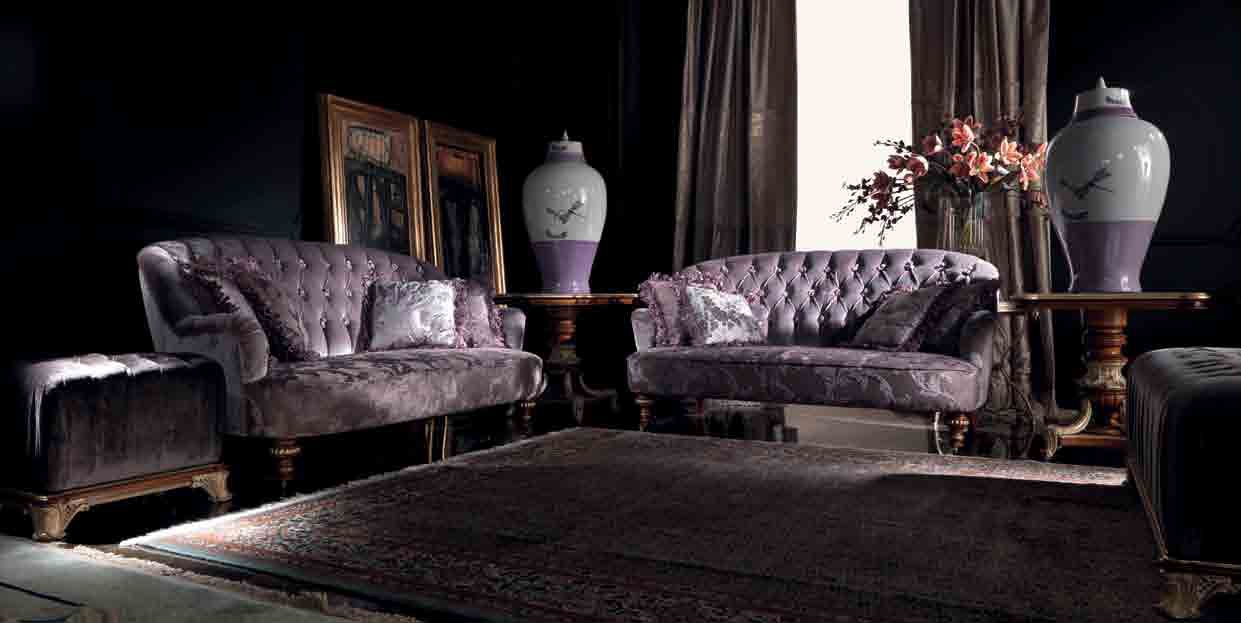 A double sofa from Italian manufacturer Jumbo Collection, collection Opera. Original model in a classic style. Frame made of natural wood of hard sorts. Upholstery - textiles from the company portfolio. Decorative elements carved legs handmade. Colours in stock.