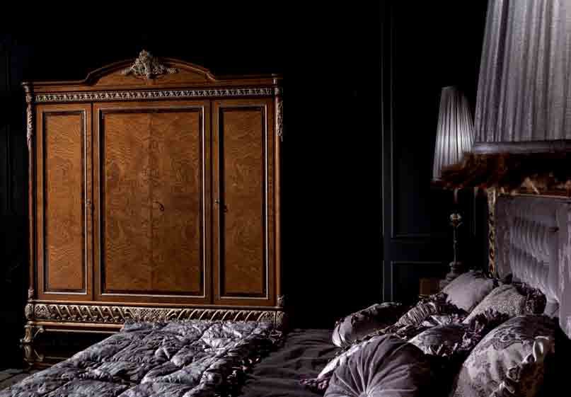 Paid wardrobe from the Italian manufacturer Jumbo Collection, collection Opera. The original model, combining a classic and timeless style. Frame made of natural wood of hard sorts, of particular importance is the use of high quality veneer, dark or light shades. Decorative elements are carved, handmade. Colours in stock.