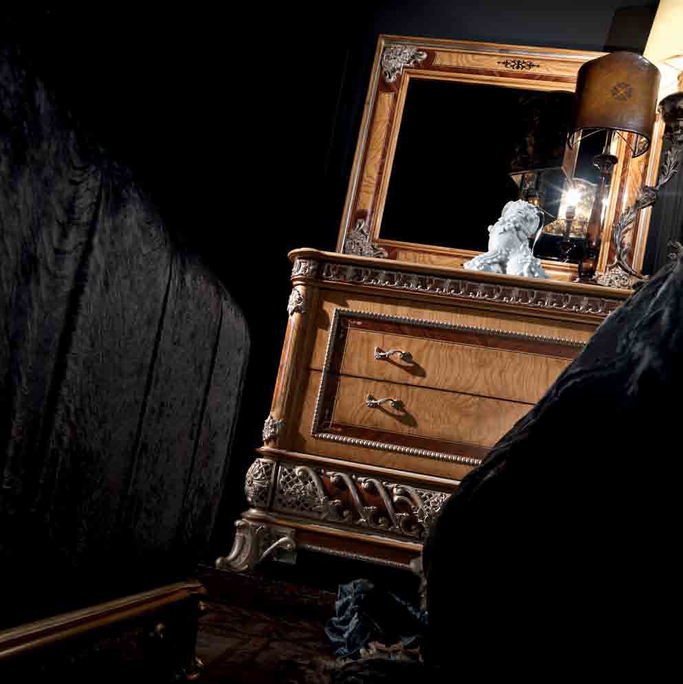 A chest of drawers from Italian manufacturer Jumbo Collection, collection Opera. Original model in a classic style. Frame made of natural wood of hard sorts, of particular importance is the use of high quality veneer dark or light shades. Decorative items - brass. Colours in stock.
