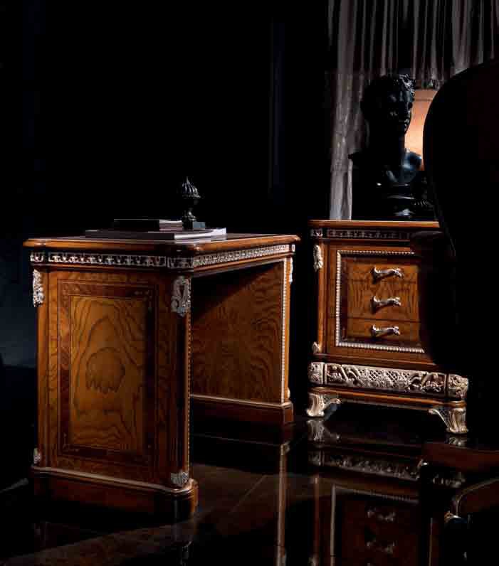 Desk from the Italian manufacturer Jumbo Collection, collection Opera. The original model, combining a classic and timeless style. Frame made of natural wood of hard sorts, of particular importance is the use of high quality veneer, dark or light shades. Decorative items - brass. Colours in stock.