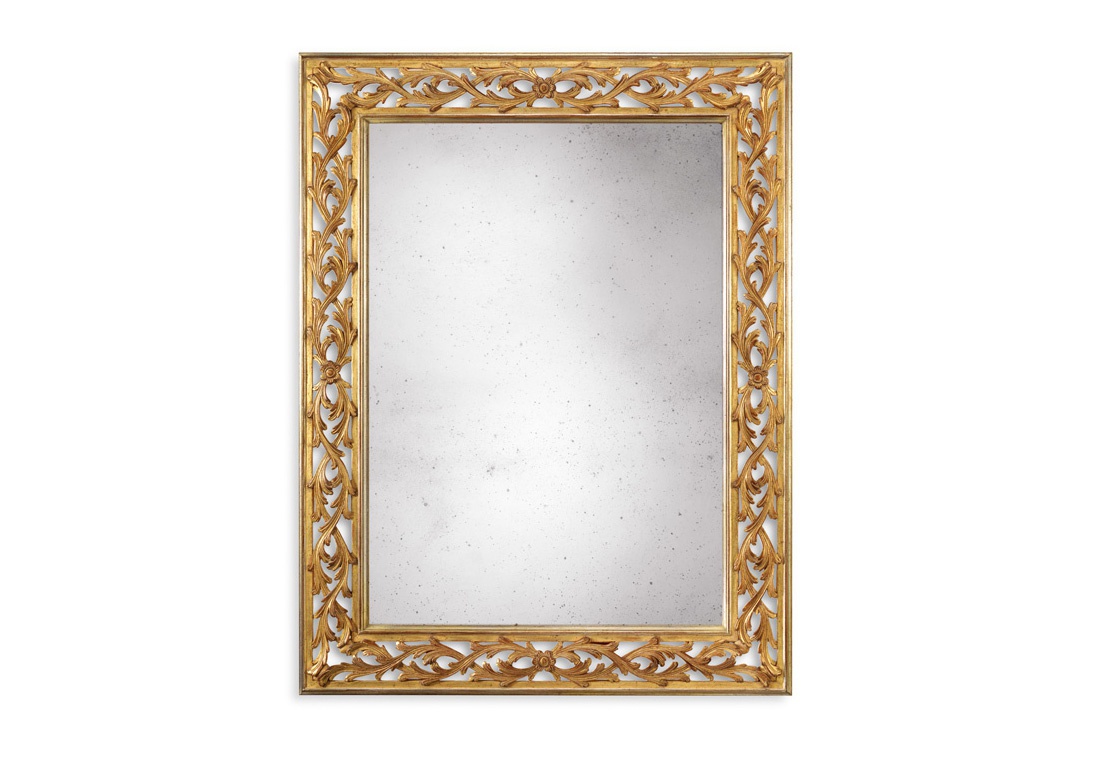 Wall mirror from the Italian producer Roberto Giovannini. Rectangular mirror in a frame made of natural wood, decorated with leaves. Finish - gold and silver foil. Decorative elements - hand-carved. Colors to choose in stock. A great decoration for Your interior living room, bedroom or hall in a classic style, combines tradition and design of the eighteenth century.