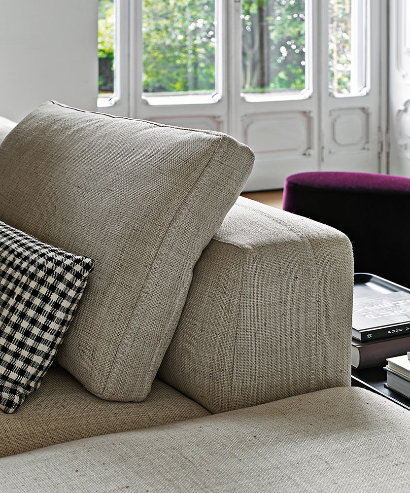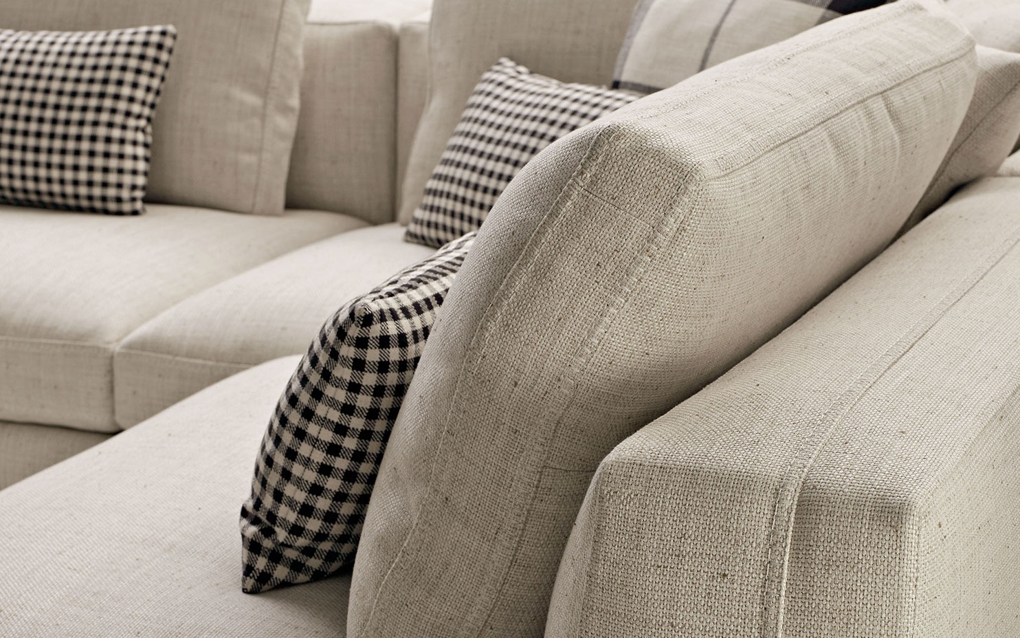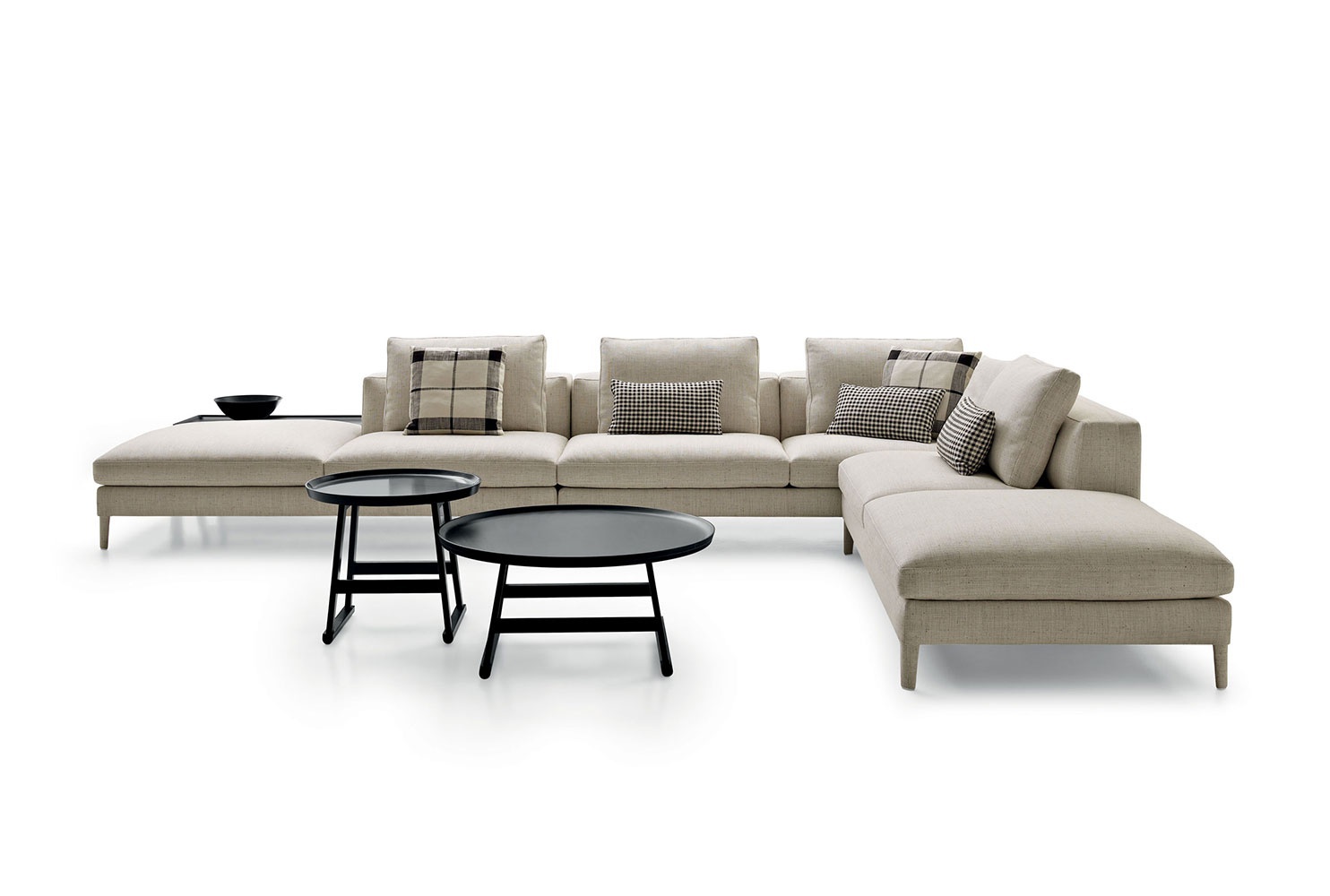 Corner sofa Dives from the Italian manufacturer Maxalto. Internal frame: tubular of steel. Filling: polyurethane foam, polyester fiber. Feet: thermoplastic material, painted or chromed ferrules. The sofa is available in two sizes, the series is completed with two armchairs with low or high backrest. A wide choice of finishes: fabric or leather. Legs in chrome or bronze finish.