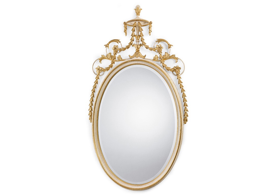 Wall mirror from the Italian producer Roberto Giovannini. Oval mirror in a frame made from solid cherry and gold finish. Decorative elements - hand-carved. Colors to choose in stock. The mirror designed in classic style. A great decoration for Your interior, combining tradition and design half of the eighteenth century.