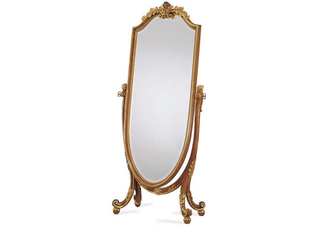 Floor standing mirror from the Italian producer Roberto Giovannini. The frame is executed in real wood, finish - gold foil. Colors to be selected from the range of the factory. The carved decorative elements of handwork. The mirror designed in classic style half of the nineteenth century. Great decoration for Your bedroom interior.