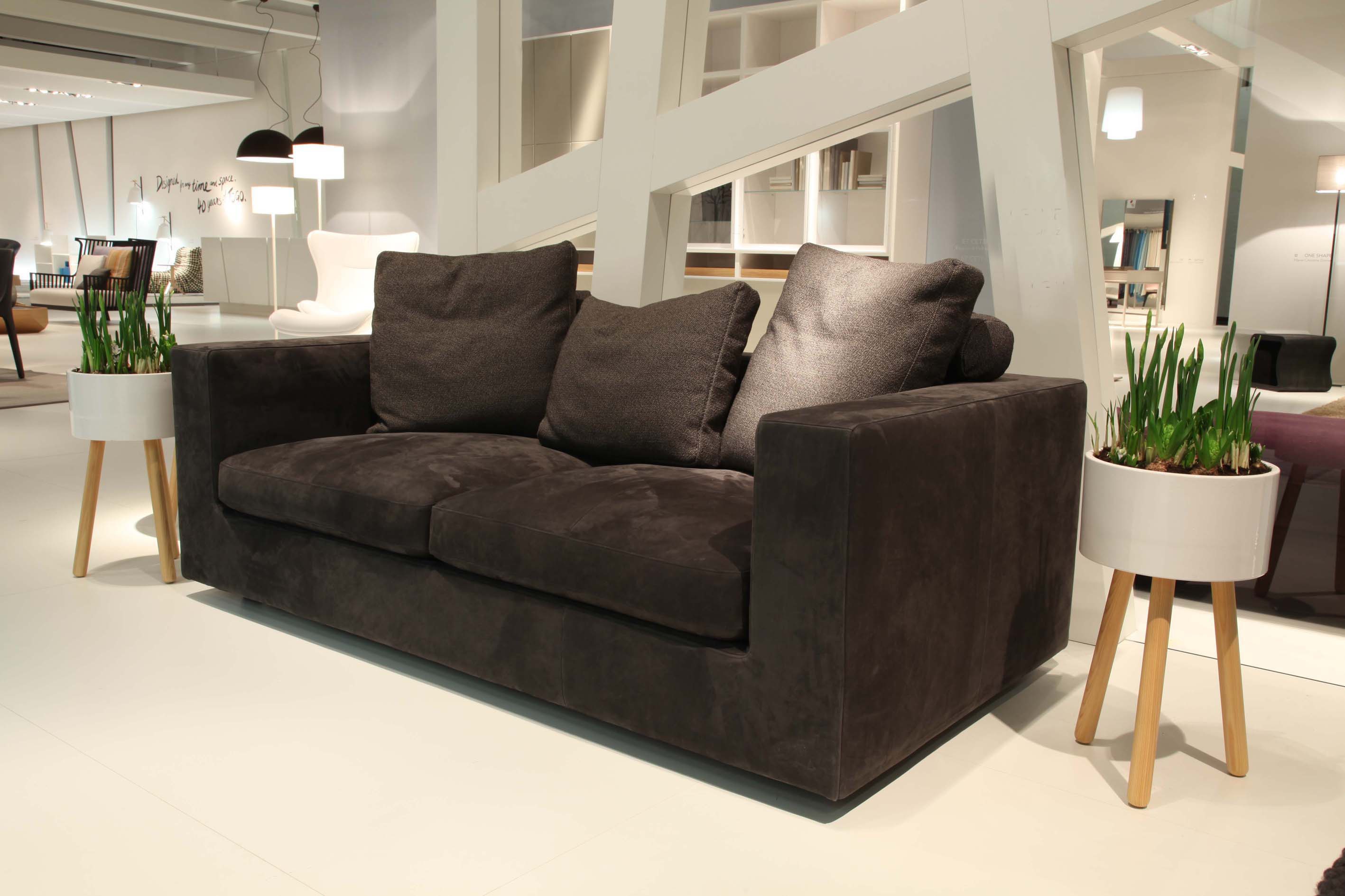 Double sofa BERGAME from French manufacturer Ligne Roset. The body, covered with a thick layer of polyester wadding and back cushion with feather filling and edging accentuate the contrast between a strict form and softness. Large cushions have a cushion to provide additional support for the shoulders, without breaking the low of the sofa. Cushions can also be used as headrests. To ensure maximum comfort sofa BERGAME offered with two different seat heights. The model is in modern style.