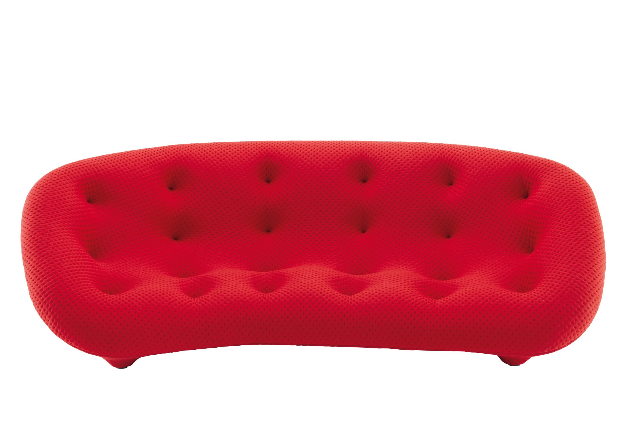 Three seater sofa PLOUM from French manufacturer Ligne Roset. Quilted padding consists of two layers of knitted fabric with a middle layer of polyester fiber attached point. The sofa looks very cozy and exudes gentleness. Upholstery thanks to the elastic properties, covers in one piece and the rounded seat and high backrest, and armrests. The trim is held only by sutures; however, she remains incredibly flexible and allows soft foam filler to perfectly adapt to the weight and body shape. Used super-soft PUR foam completely covers all the seat and can quickly change its shape to optimally support a seated in any position and for many years to maintain its original appearance. The model is made in modern style.