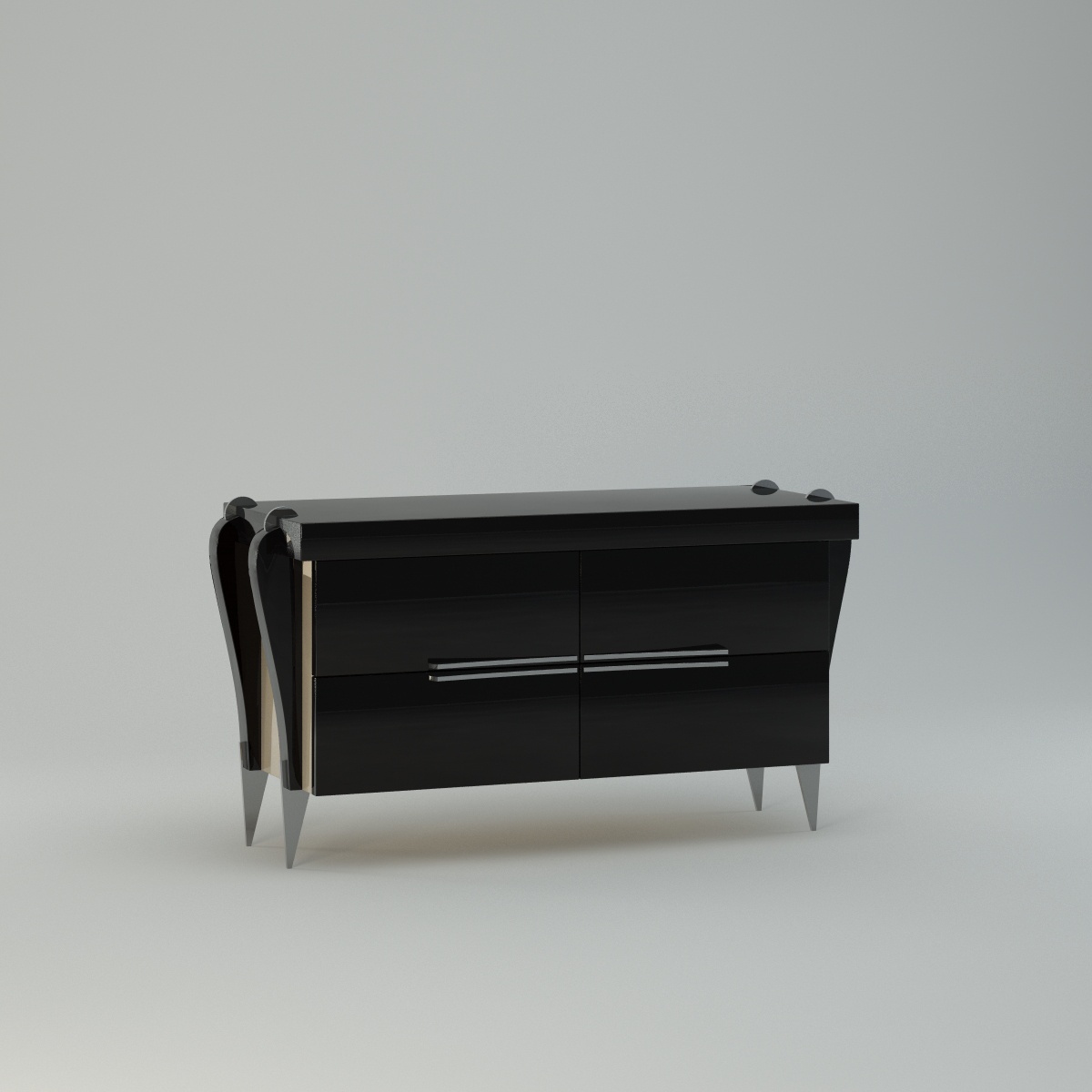 Stand from Italian manufacturer Turri. The frame is made of wood. The surface is lacquered from a range of companies. Accessories, legs made of chrome-plated steel, which gives brevity to the mild forms of the product. Colors - in stock. Cupboard with 4 doors made in a modern style, will brighten any interior.