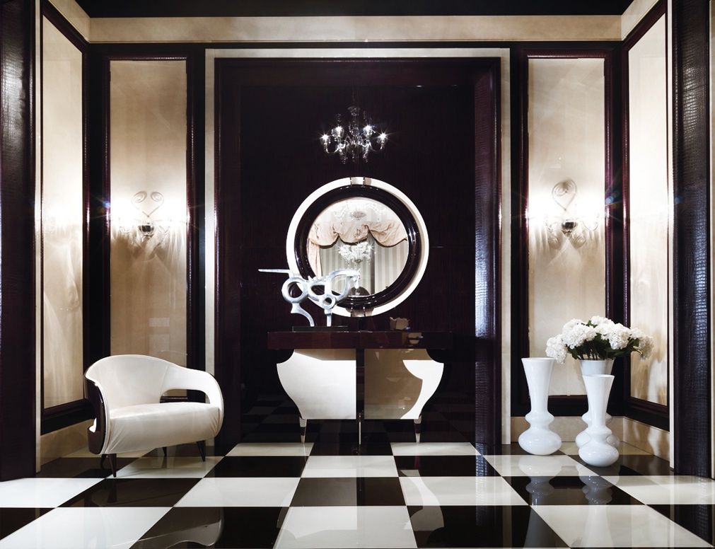 The Pegaso mirror from the Italian manufacturer Turri. Frame is wooden. The surface is lacquered. The decor in the form of concise steel elements. The product is made in art Deco style in a modern approach, ideal for interior in modern design.