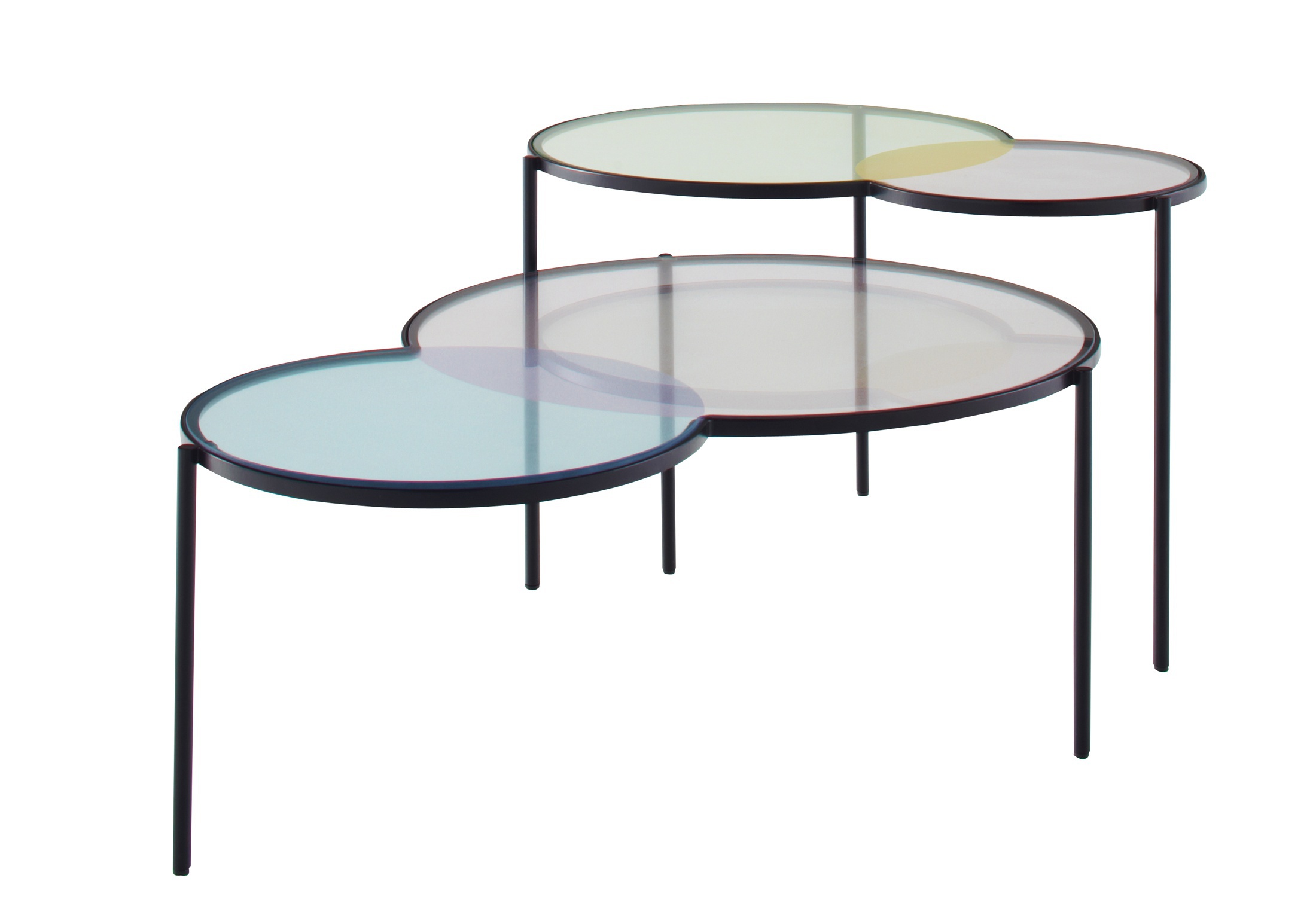 Coffee table HUES from French manufacturer Ligne Roset. Legs, frame - metal. Worktop - glass. The model is made in modern style. Colours in stock.