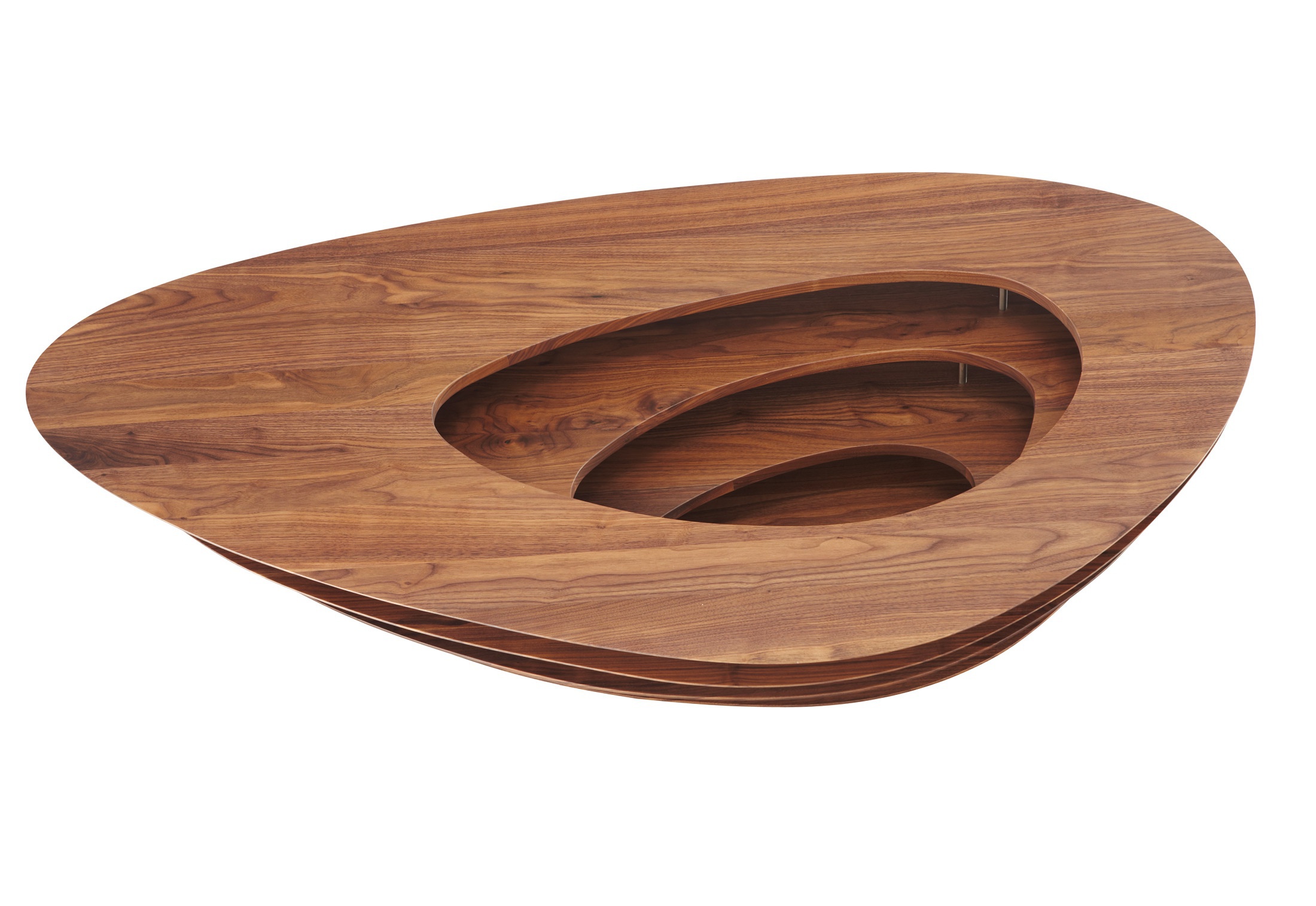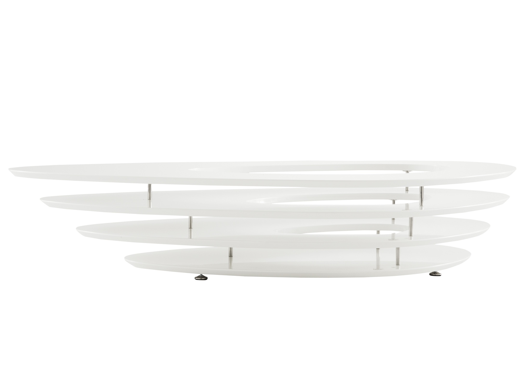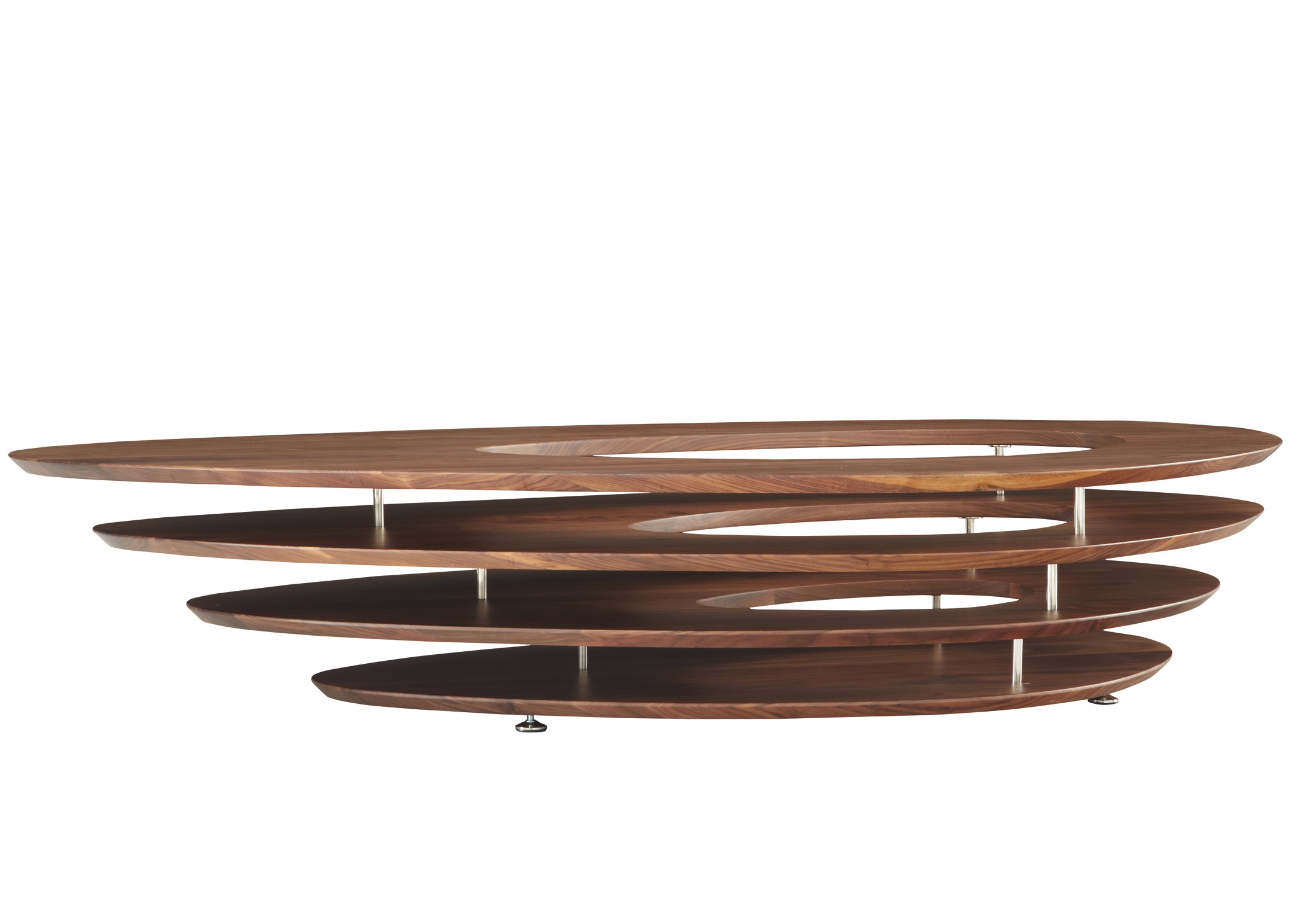 Coffee table INTERSTICE from the French manufacturer Ligne Roset. Low expressive coffee table from solid walnut or glossy white lacquer. The model is made in modern style. Colours in stock.