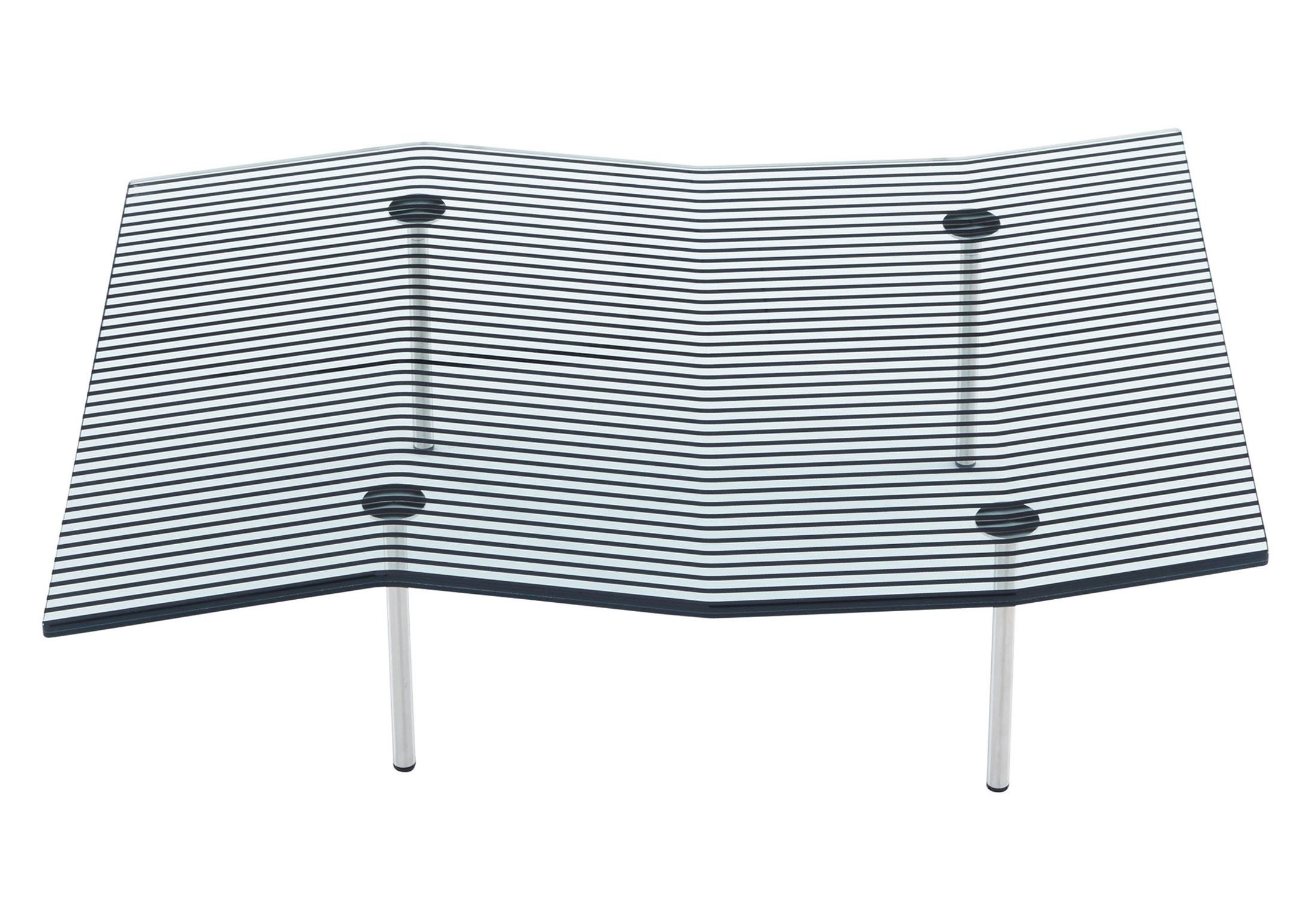 Table top of clear glass, thickness 12 mm, consisting of 2 parts and is deposited by screen printing of a drawing in charcoal. The model is made in modern style.