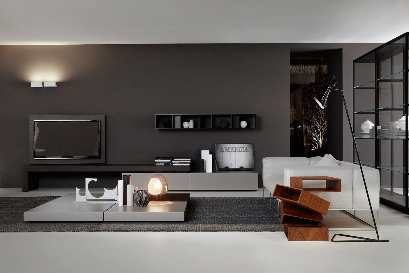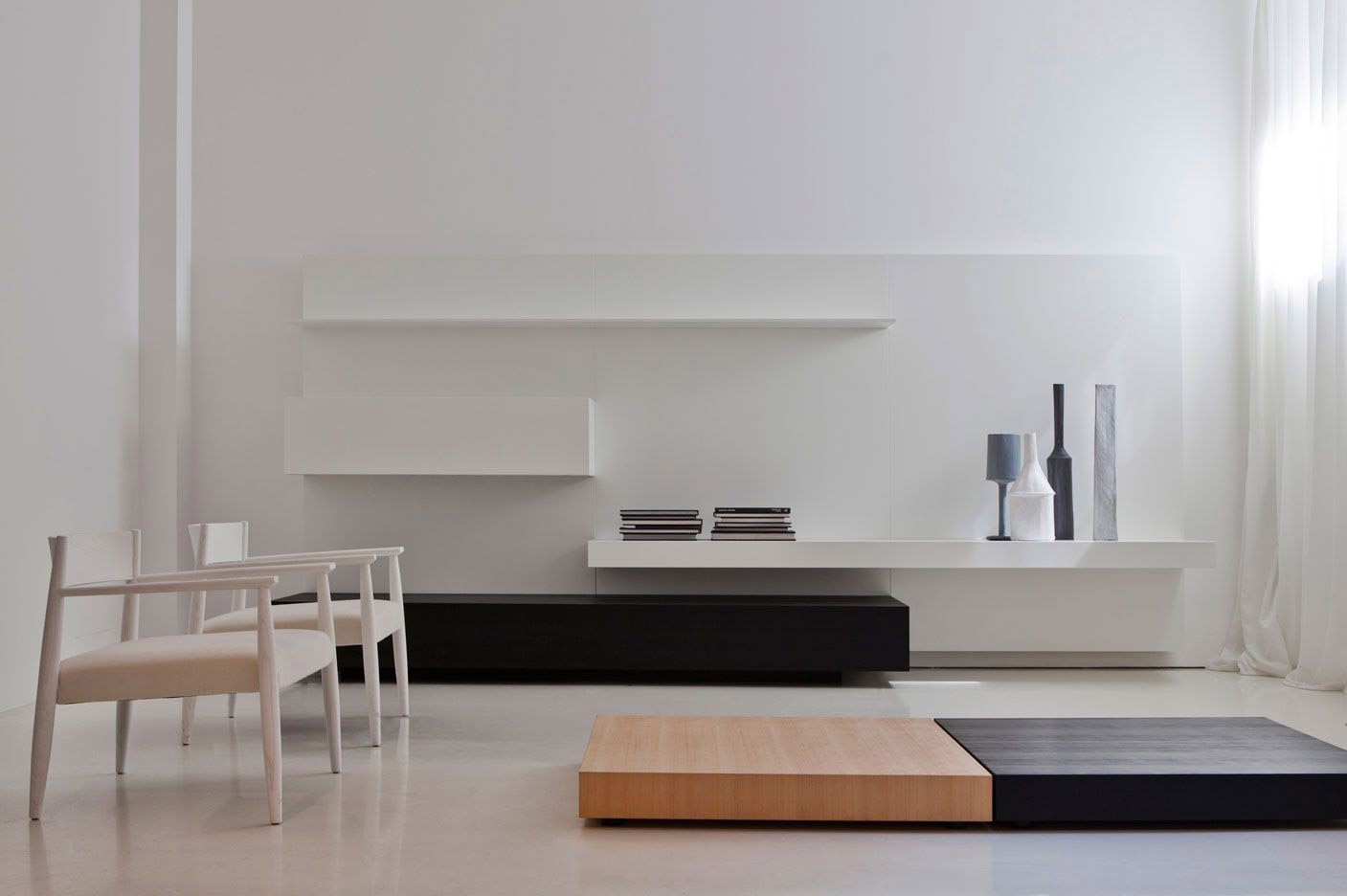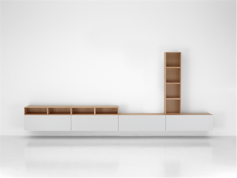 Modern modular system from Italian manufacturer Porro. The model is a continuation of the series Modern. Includes pendant and floor modules of vertical, horizontal, open or closed. There are compartments for storage drives (CD / DVD), TV. The material of the array of Hemlock (durable wood belongs to the pine family, native to Canada). Finishing combo: "Natur" + white or colored lacquer. In 2009, the series added three new songs ready.