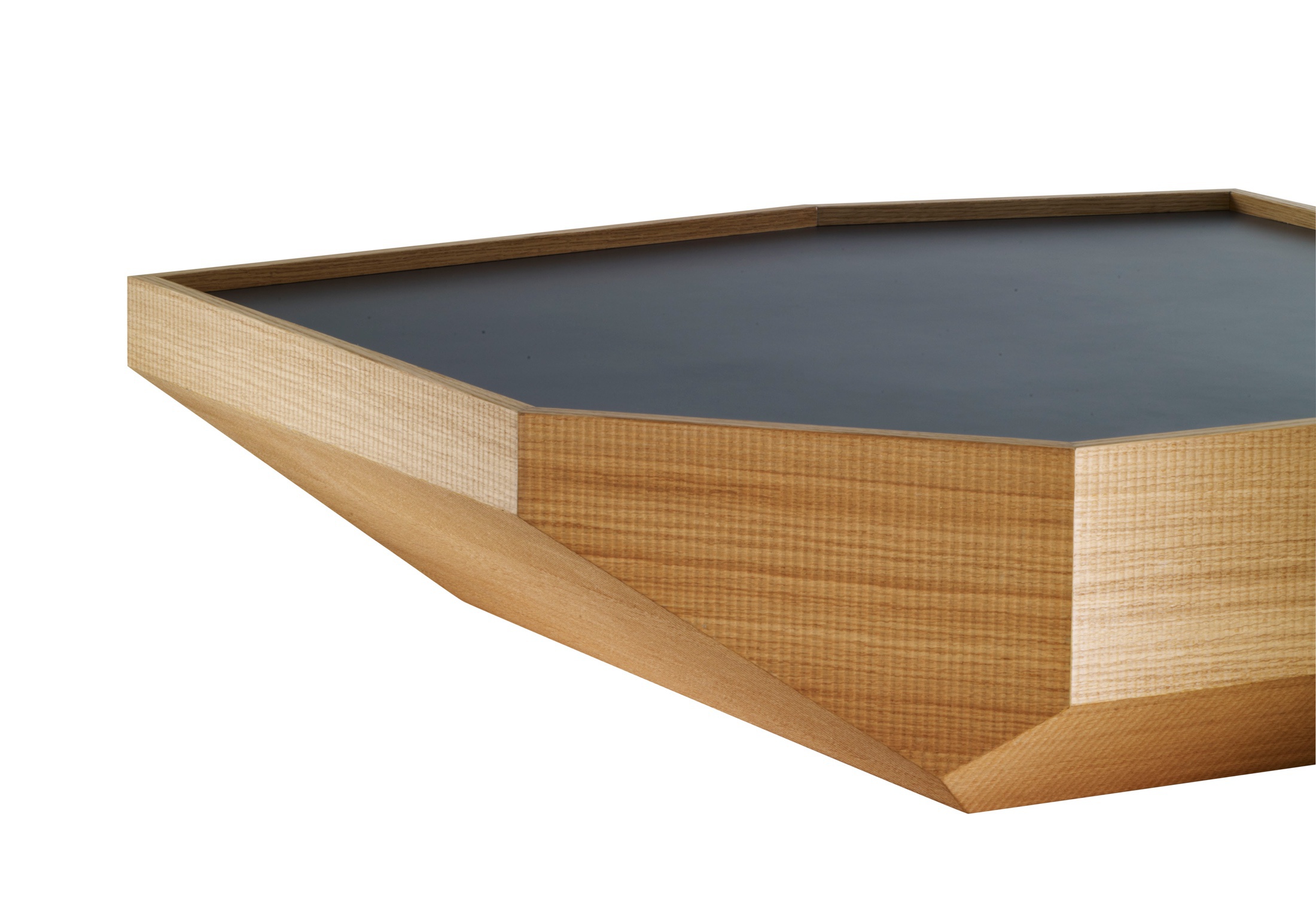 POPPY PATTERSON coffee table from French manufacturer Ligne Roset. Monolithic coffee table POPPY PATTERSON combines natural and lacquered wood. The materials are combined to form a sculpture made of broken lines. The model is made in modern style.