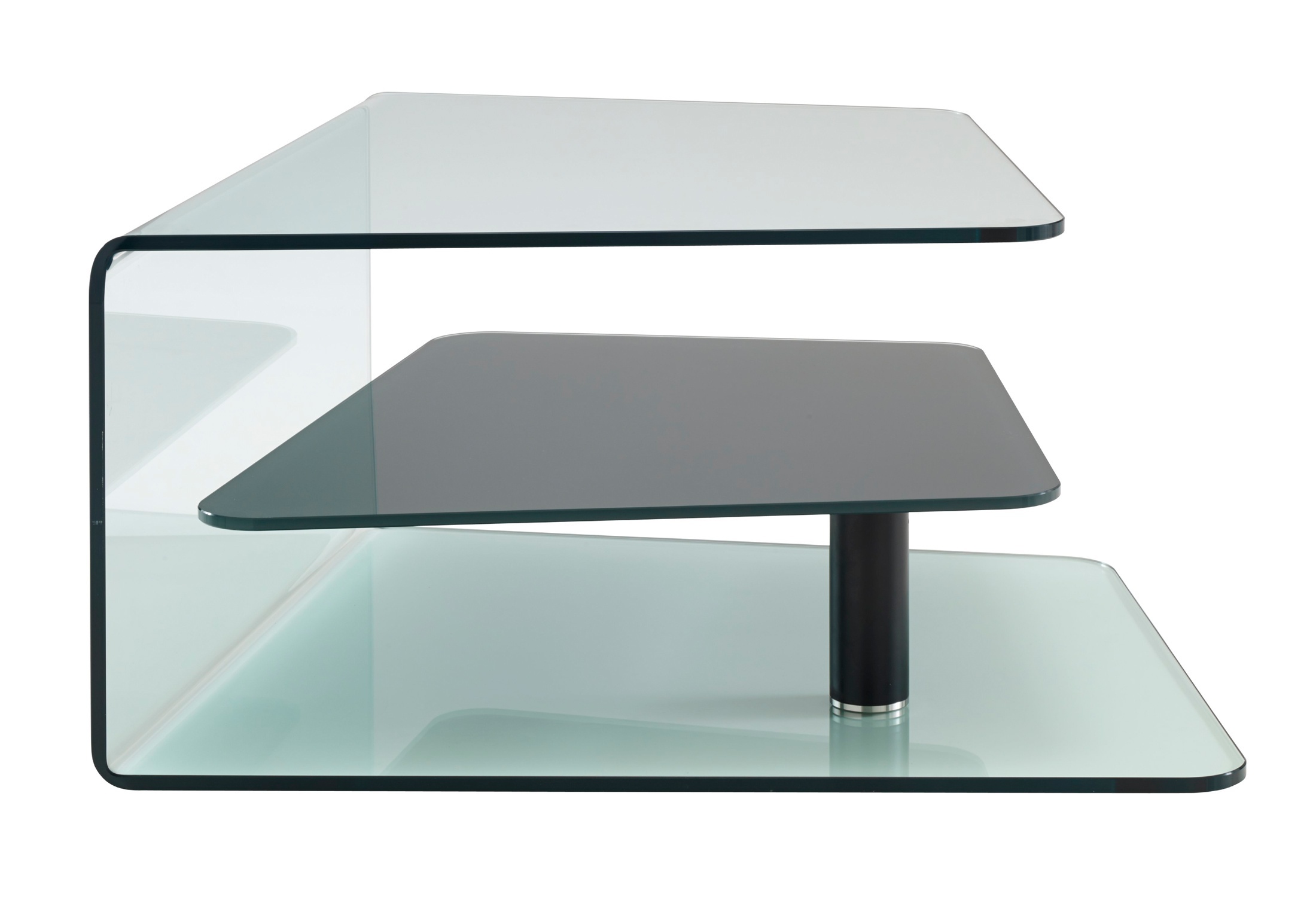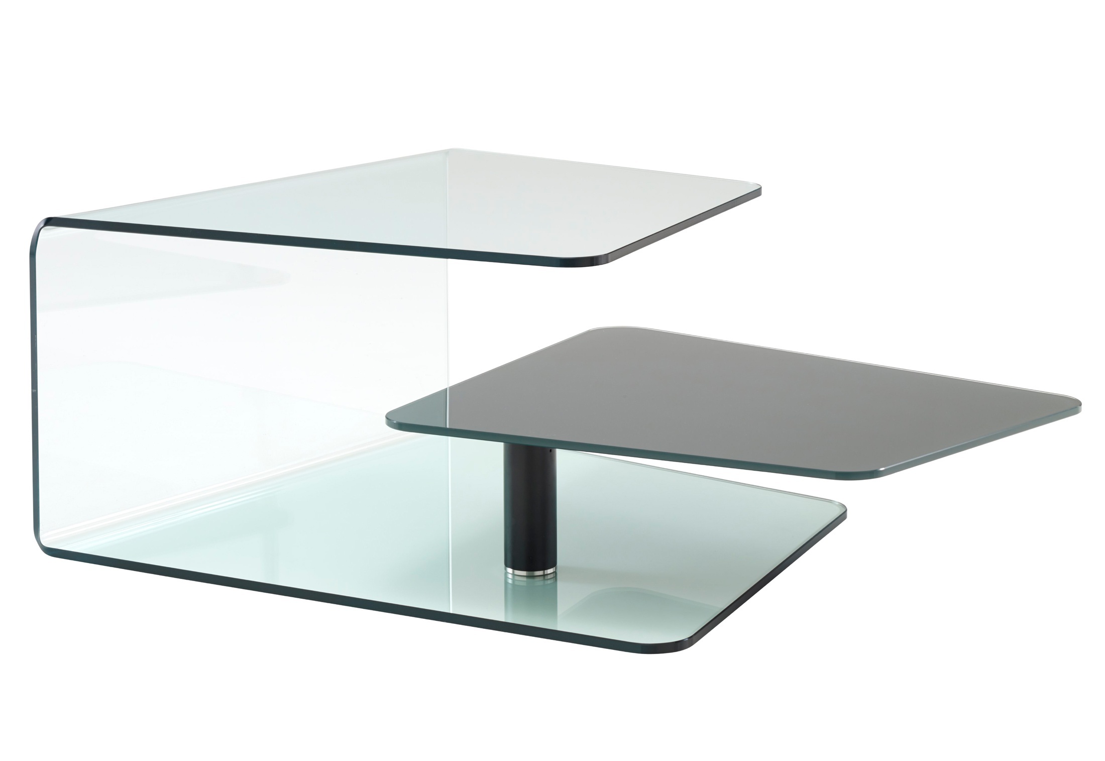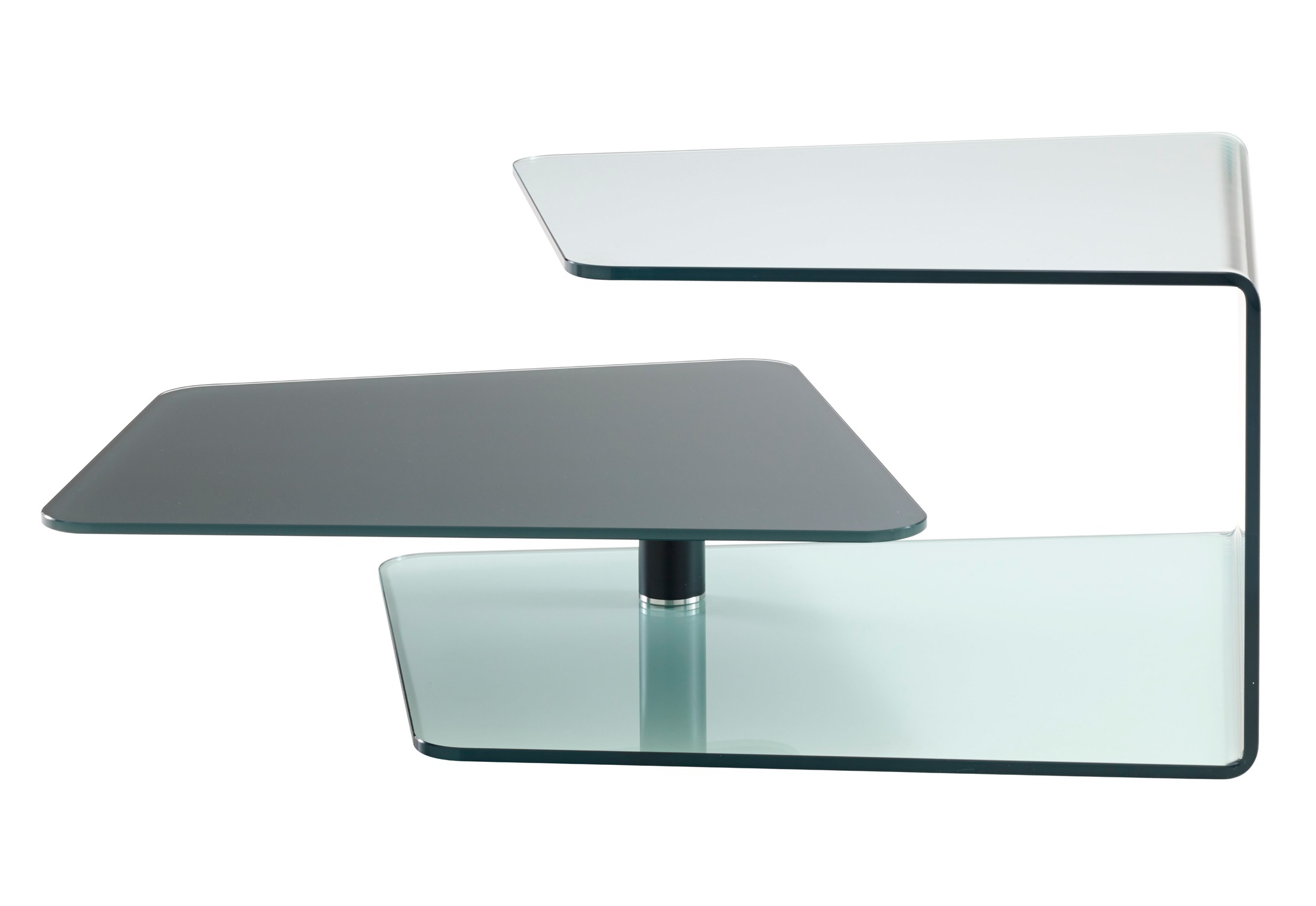 Coffee table TAVOLETTO from French manufacturer Ligne Roset. Double table top made from curved transparent glass augmented rotating the inner top of the metal, covered with black varnish. No doubt an interesting solution for a variety of interiors. The model is made in modern style.