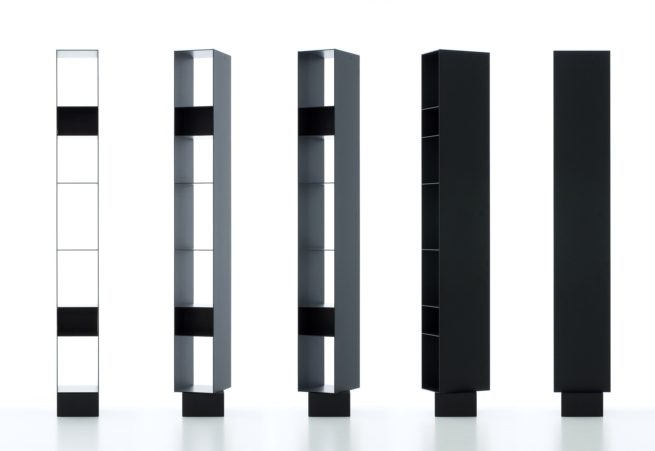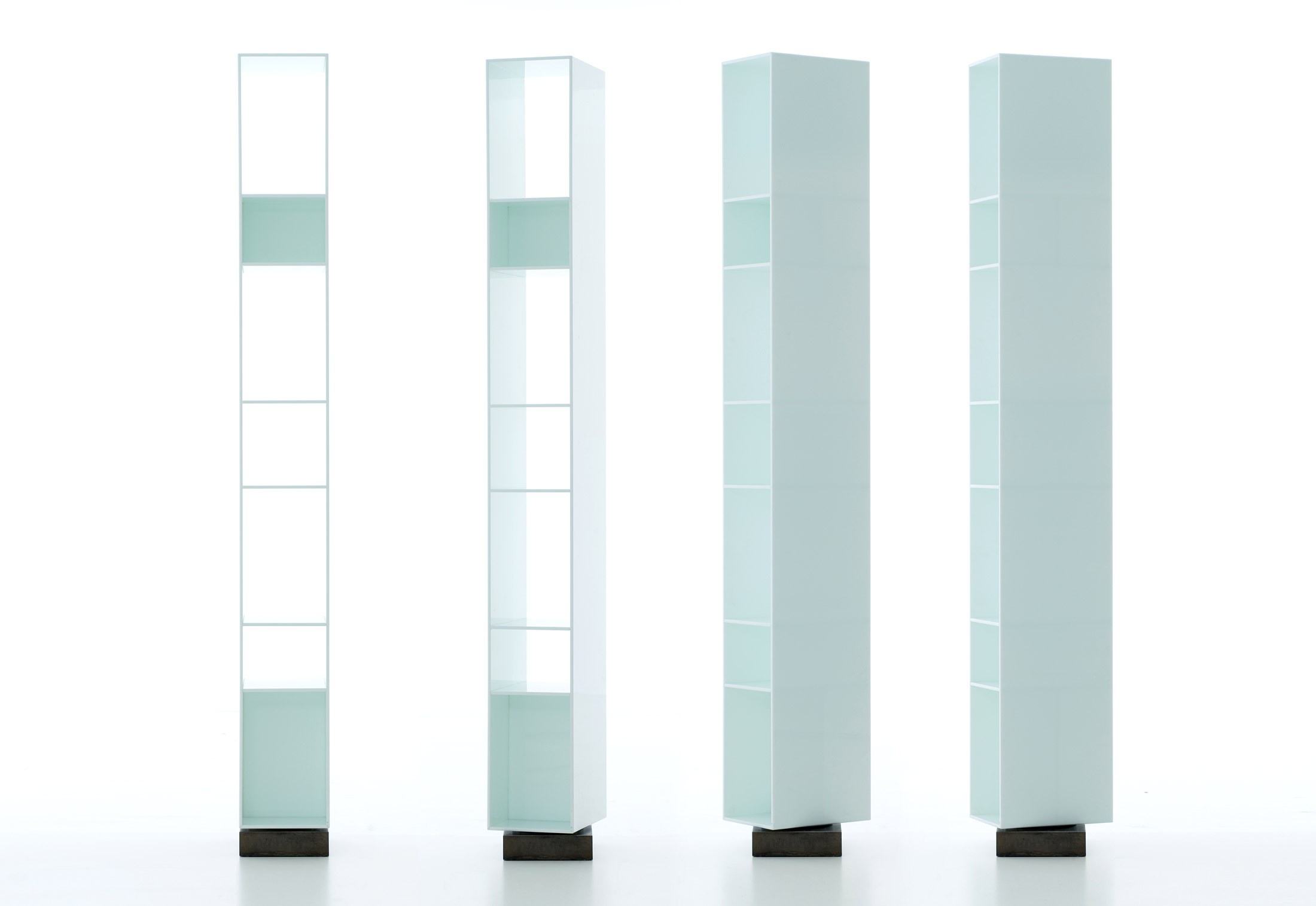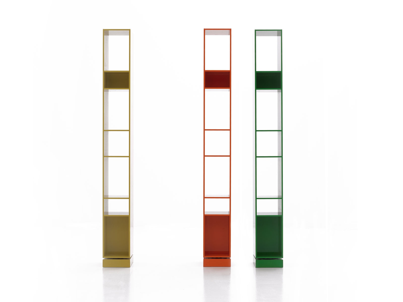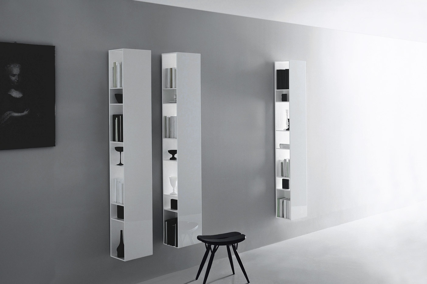 Rack Sidewall from Italian manufacturer Porro. Rack wood with shelves of various heights. Available in hanging and floor versions. The hinged shelf mounted on the wall so that access is possible to the shelves on the sides, and the front is a blind facade. Outdoor rack - swivel. The basic version of the model is available in white lacquer finish made of ebony, covered with black lacquer outside and red and blue and yellow color inside. In 2009 there are new versions, inside and outside covered with a bright high gloss lacquered different from the collection of the factory.