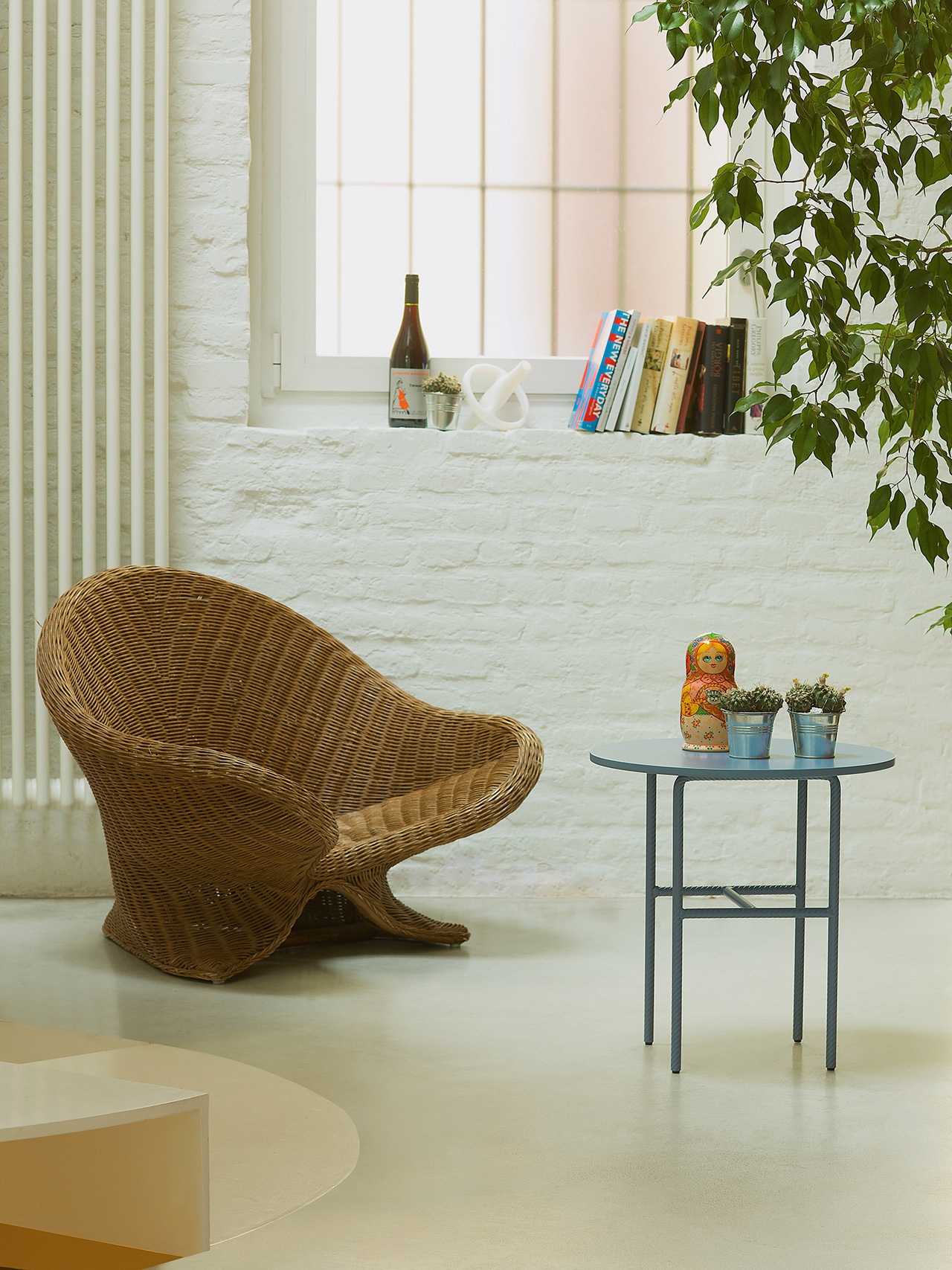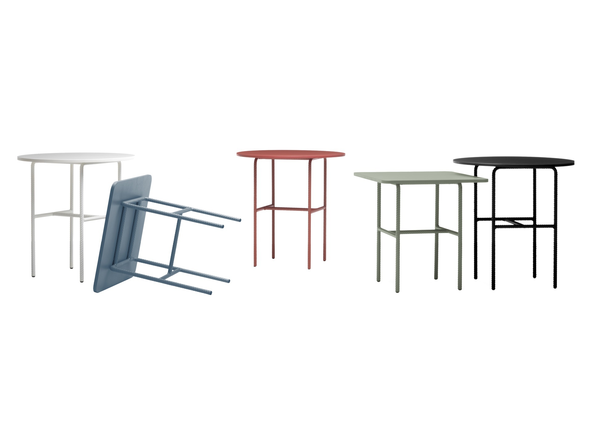 Candy coffee table from the Italian manufacturer Cappellini. Tables reinvents the steel reinforcement normally used for concrete structures. Thanks specialing manufacturing process, this functional metal rod becomes a surprisingly decorative element after its color. Top available in 2 different shapes, sizes and 5 colors (pigeon blue, moss grey, terracotta, white and anthracite).