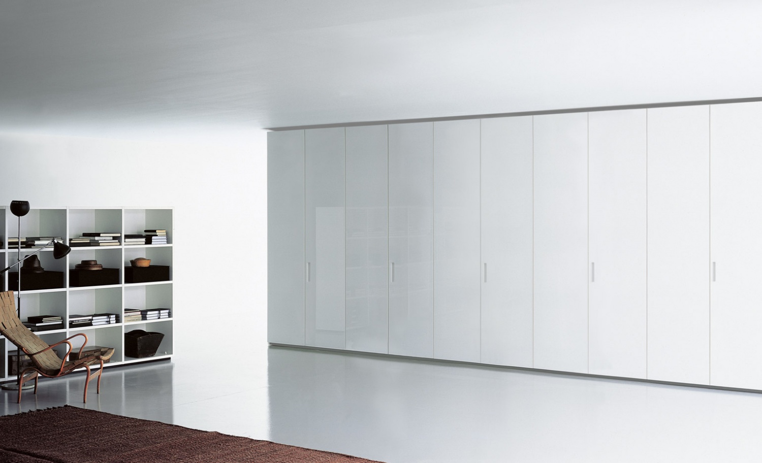 Wardrobe Battente from Italian manufacturer Porro. Storage, walk-in closet program on the aluminum frame. The program includes swing, sliding or hinged doors and door-accordion. Finish in white lacquer. The inner filling by the customer.