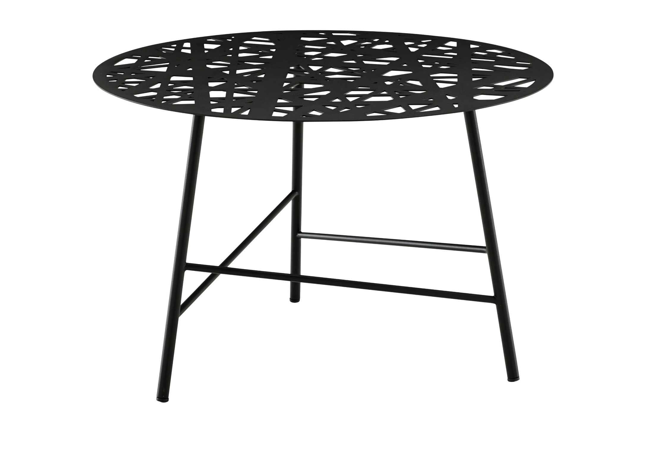 Pridivanny table EZOU from French manufacturer Ligne Roset. Behind the design trio from Lyon a lot of small pieces of furniture and accessories designed for Ligne Roset. Their small metal table EZOU has the countertop with a non-standard pattern and suitable for use outdoors. The model is made in a modern style, combines tradition and design.