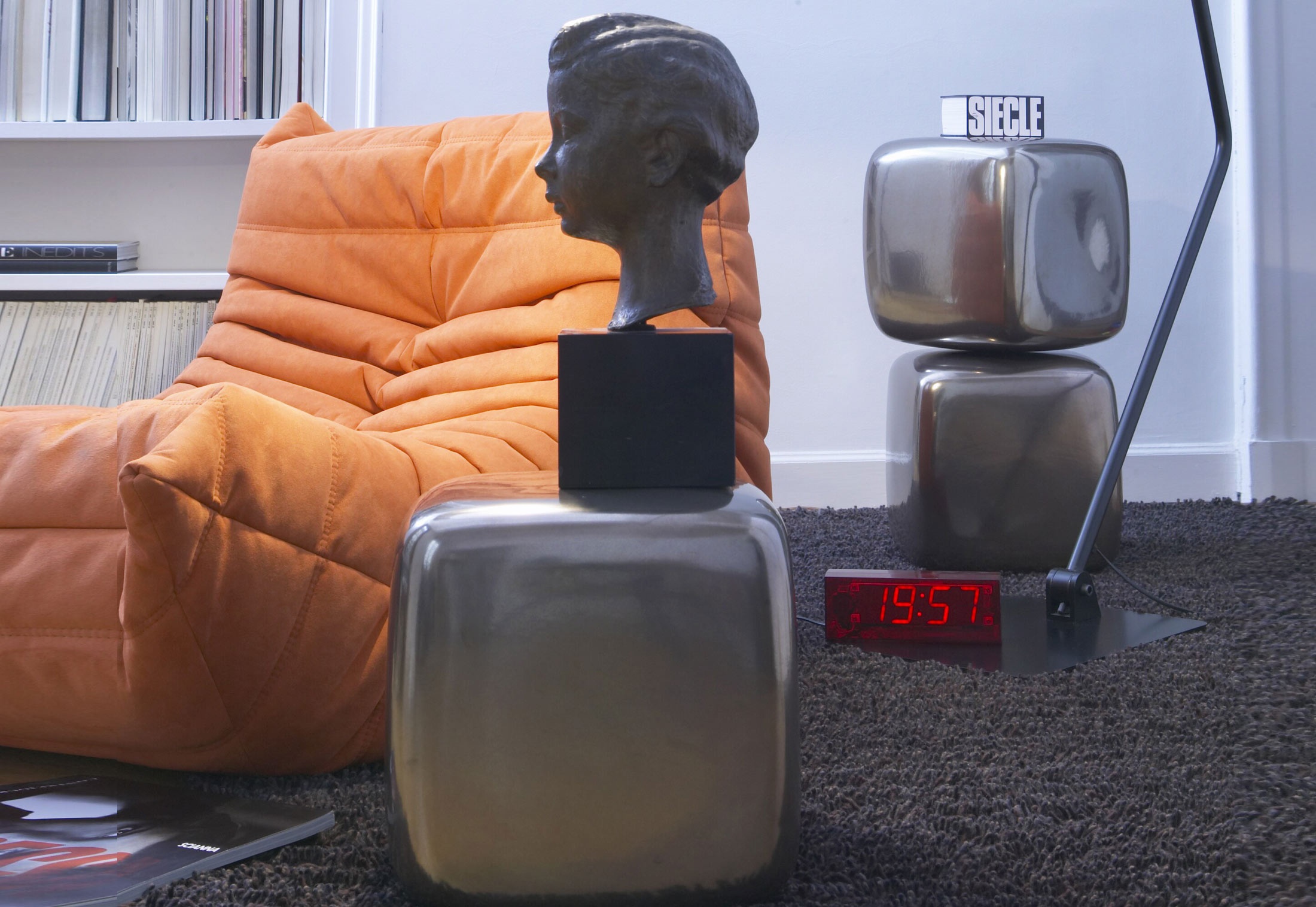 Pridivanny table GLACON from French manufacturer Ligne Roset. Extravagant a small table shaped like dice. For a table made from a rather unusual material: earthenware, covered with Golden-brown enamel. The model is made in modern style.