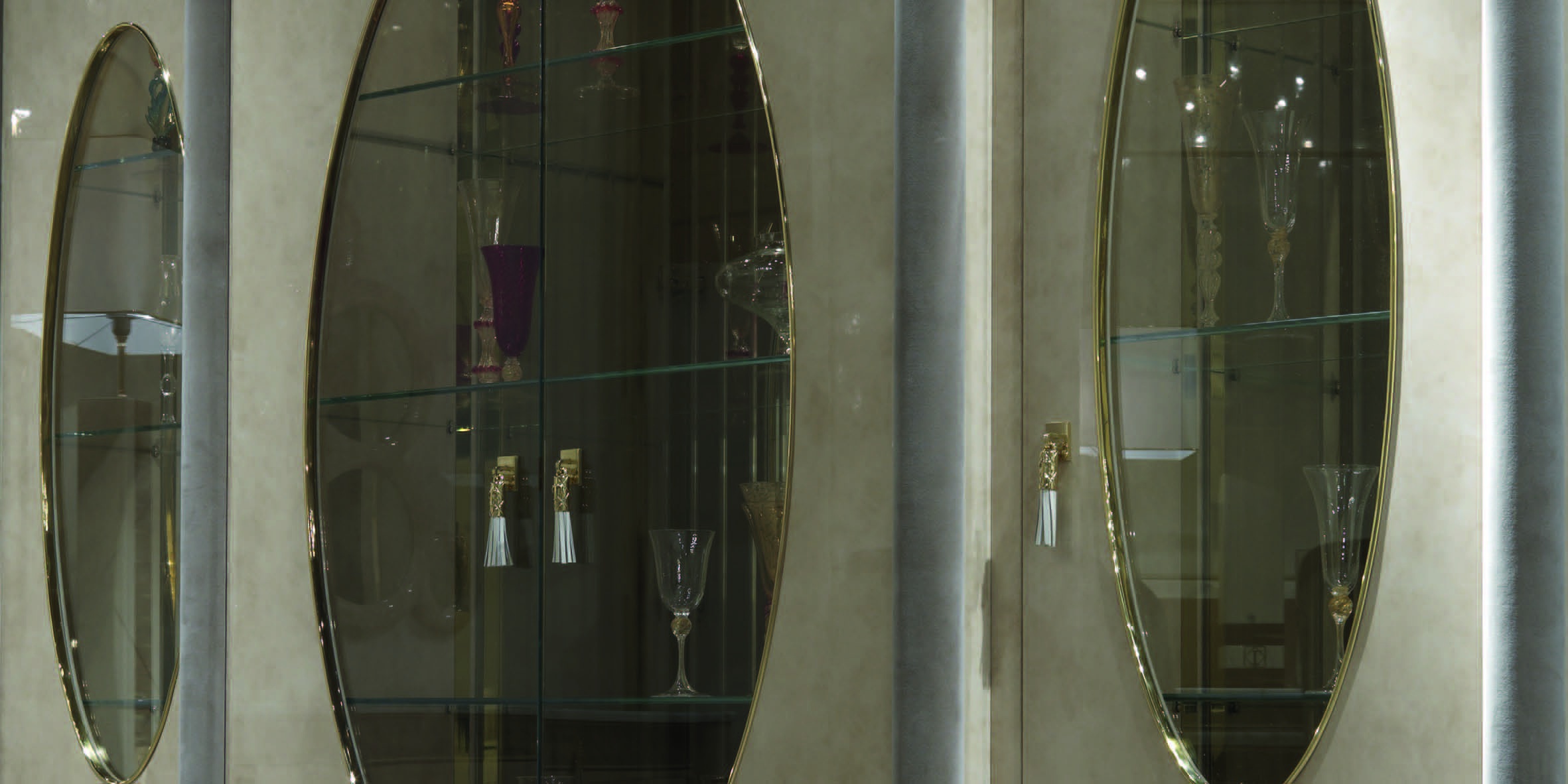 frame: wood upholstery, trim: genuine leather decor: metal showcase: glass the surface: lacquered |