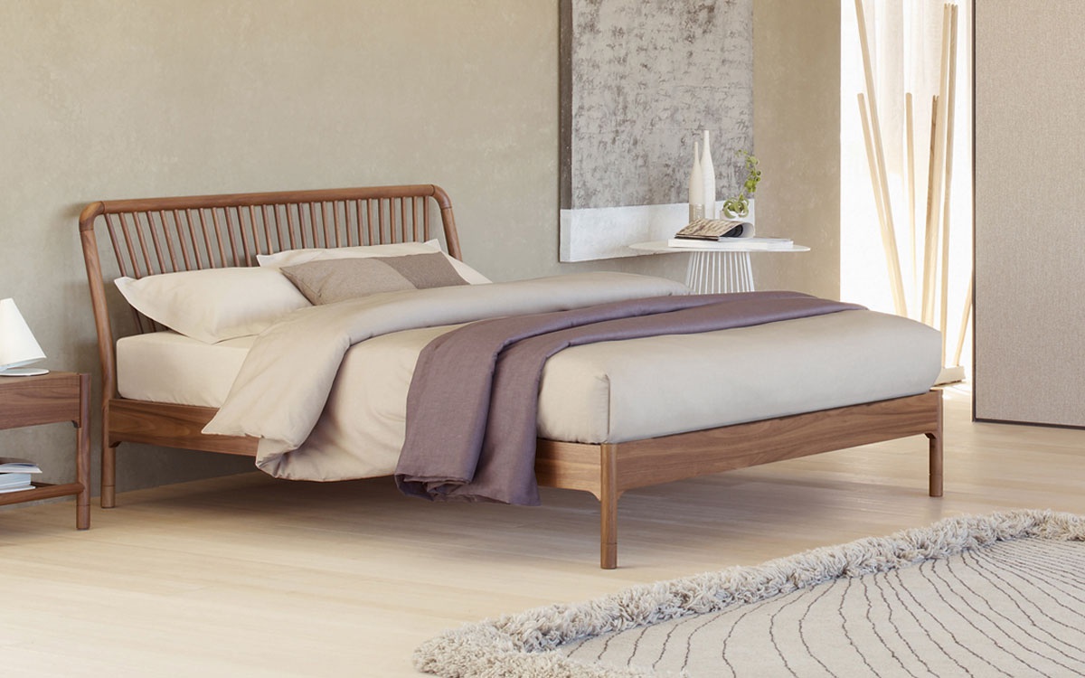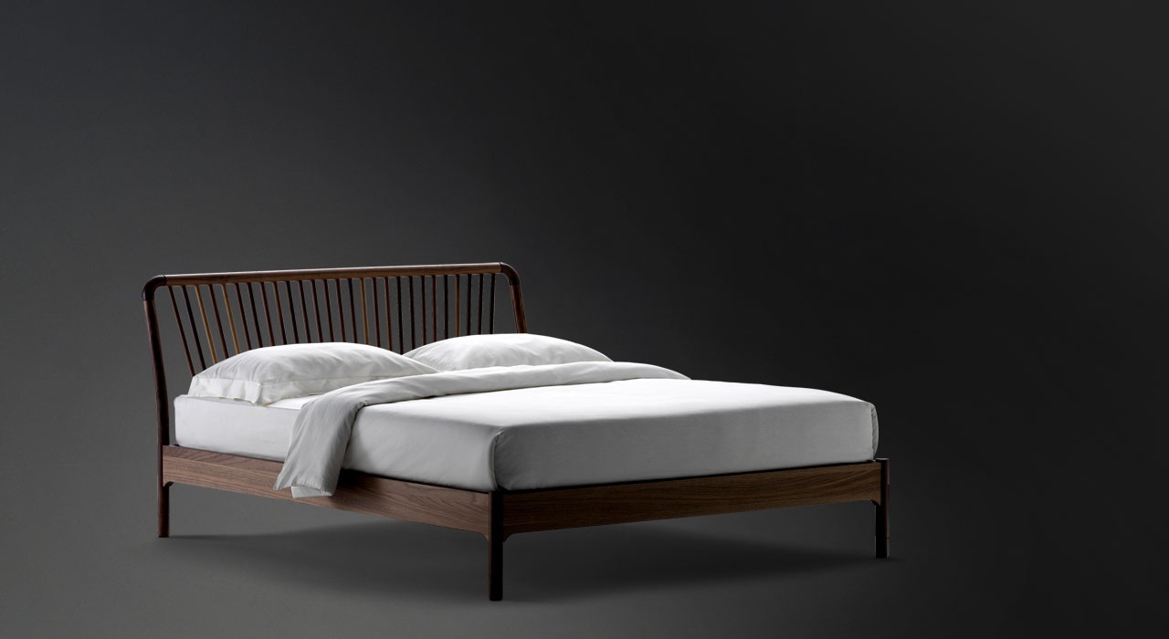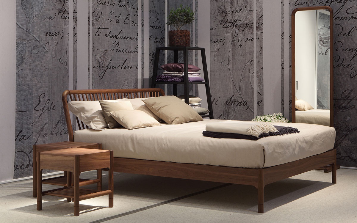 Sveva is a double bed from Italian manufacturer Flou. Frame of solid ash stained wenge. The headboard consists of 27 wooden sticks. For the mattress base is provided with adjustable stiffness. The idea of the Sveva collection is inspired by Scandinavian wooden chairs, the backs of which are equipped with seats radiating from wooden rods. The model is made in modern style.