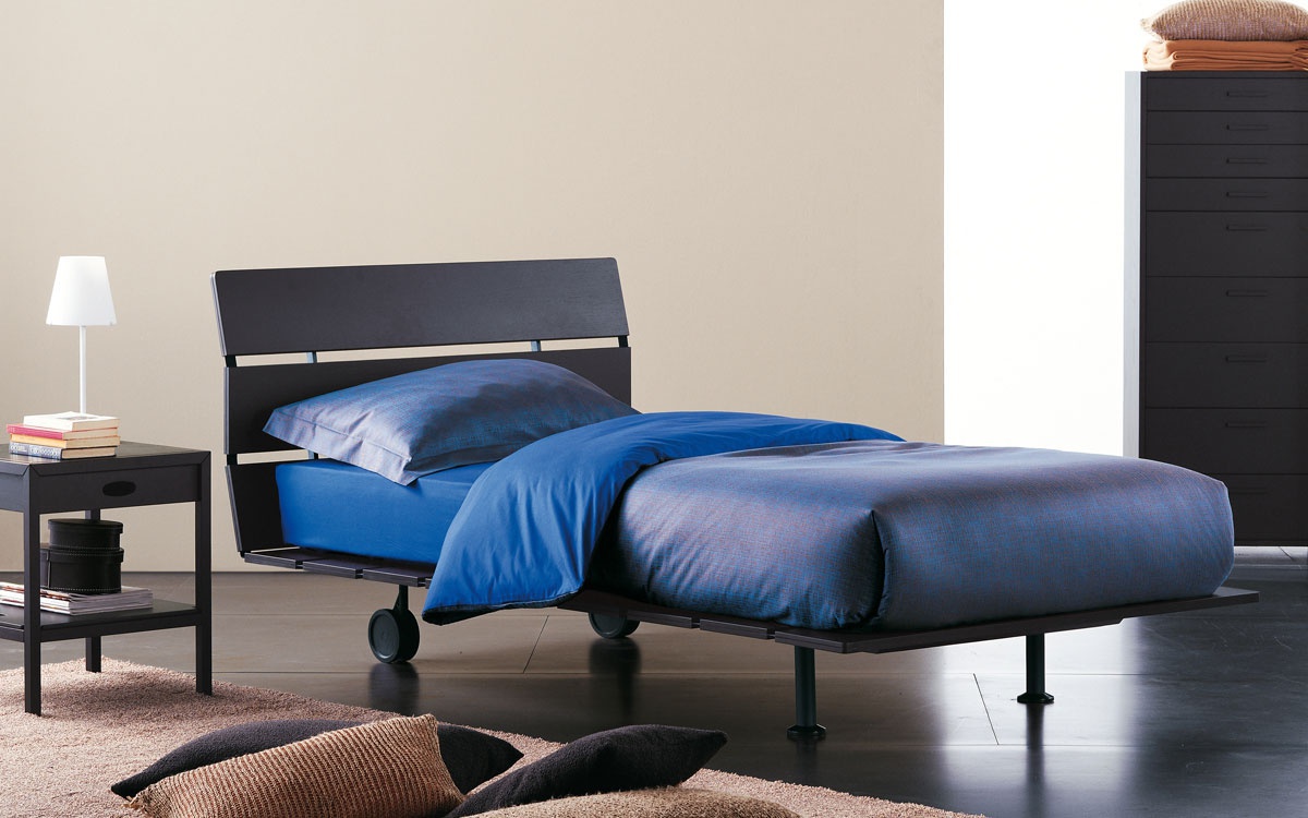Odnopolnaja the Tadao bed from Italian manufacturer Flou. The frame is made from solid oak in a lacquered finish. Double model with a high headboard for the bedroom is designed in modern style. Colors: white, blue, black. The model is made in modern style. Colours in stock.