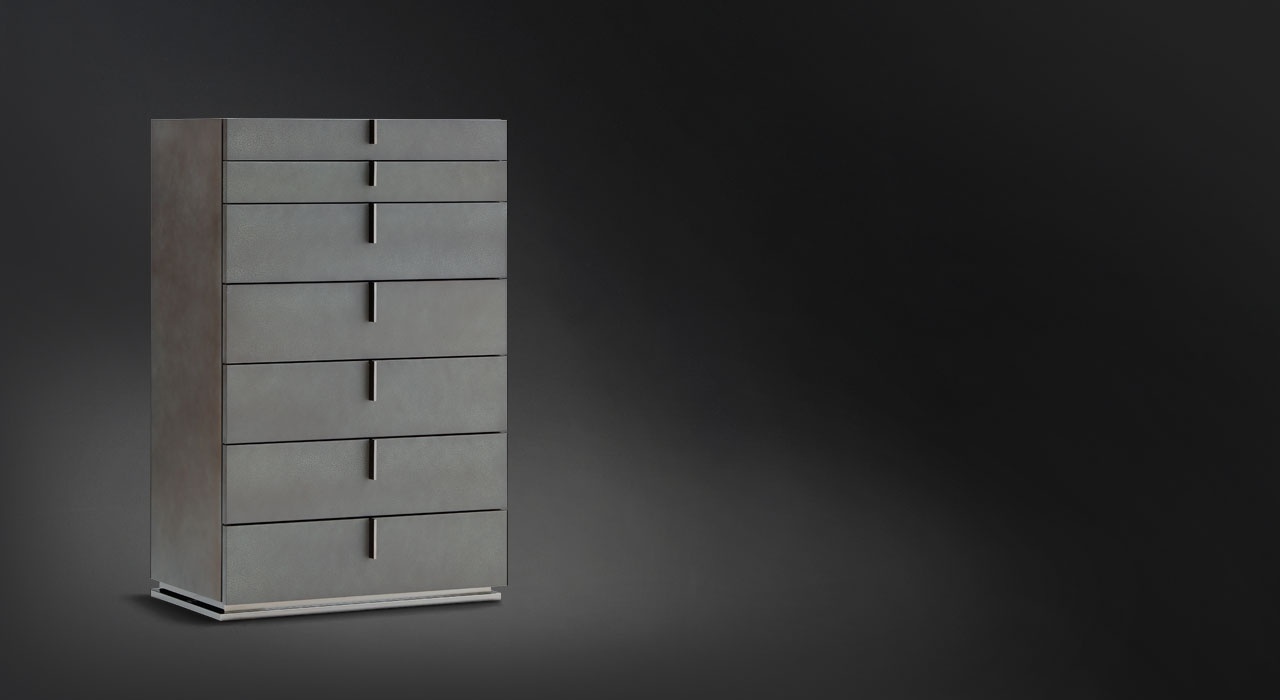 The Ari of drawers from Italian manufacturer Flou. Wooden structure with two or three drawers, decorated with matte or glossy paint. The model is available in two colors. Handle and base - black chrome. Two upper box drawers are equipped with jewelry compartments, covered with a cloth. The model is made in modern style.