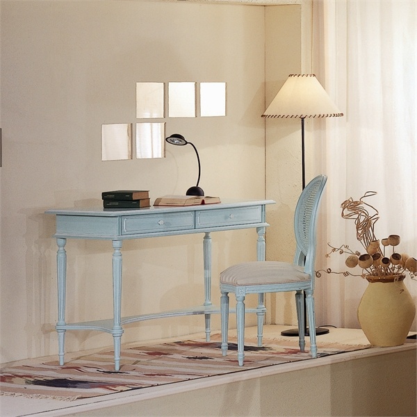 Written Desk Scrittoio London from the Italian manufacturer Pellegatta. A writing Desk is handmade. Top with two drawers rests on turned legs, United by shelf curly-pravovoi. The frame of tamborito, plate with honeycomb on the basis of solid spruce, legs and drawer front panels - solid wood, ramino. The model is hand-painted in any colour from the range or by a given sample, can be decorated with hand painting technique of tempera painting from 6-8 flowers. Drawing from the catalog of the factory or on the customer's sketch. The surface is covered with a substance, which protects it from scratches and damages.