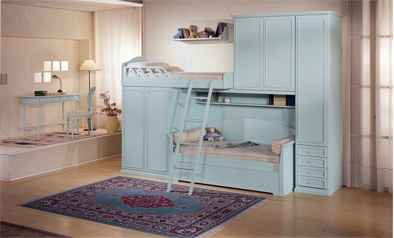 The series also includes a loft bed with built-in wardrobes, sofa-bed, a chair, a bookcase, a curbstone under TV, wall shelving.