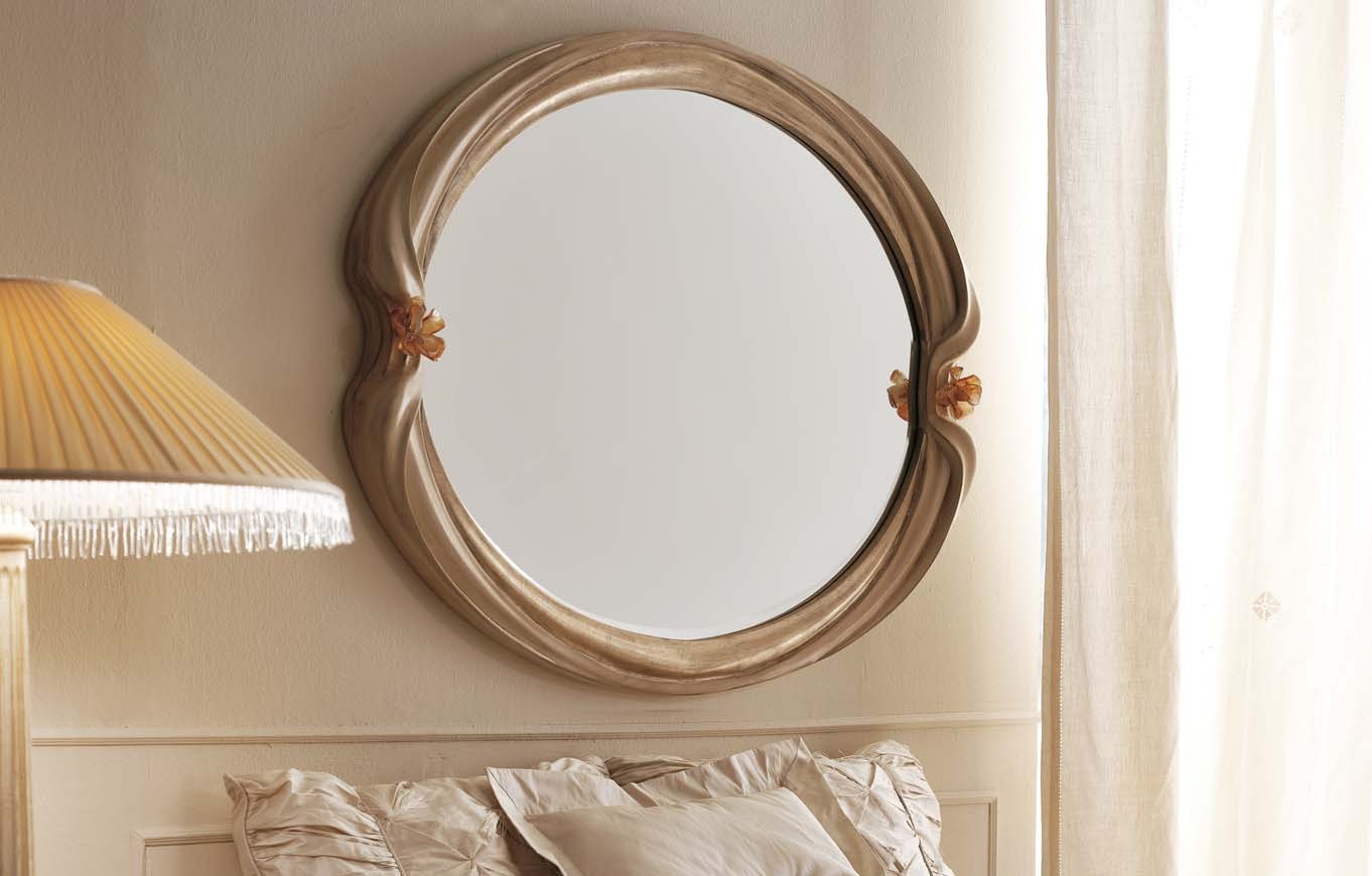 Mirror Ambiente Notte from the Italian manufacturer Savio Firmino. Model wall-mounted , oval shaped, frame in solid wood. Coating - varnish, gold leaf. The surface artificially aged. Color range: by catalogue of the manufacturer. The model is decorated with handmade carving.