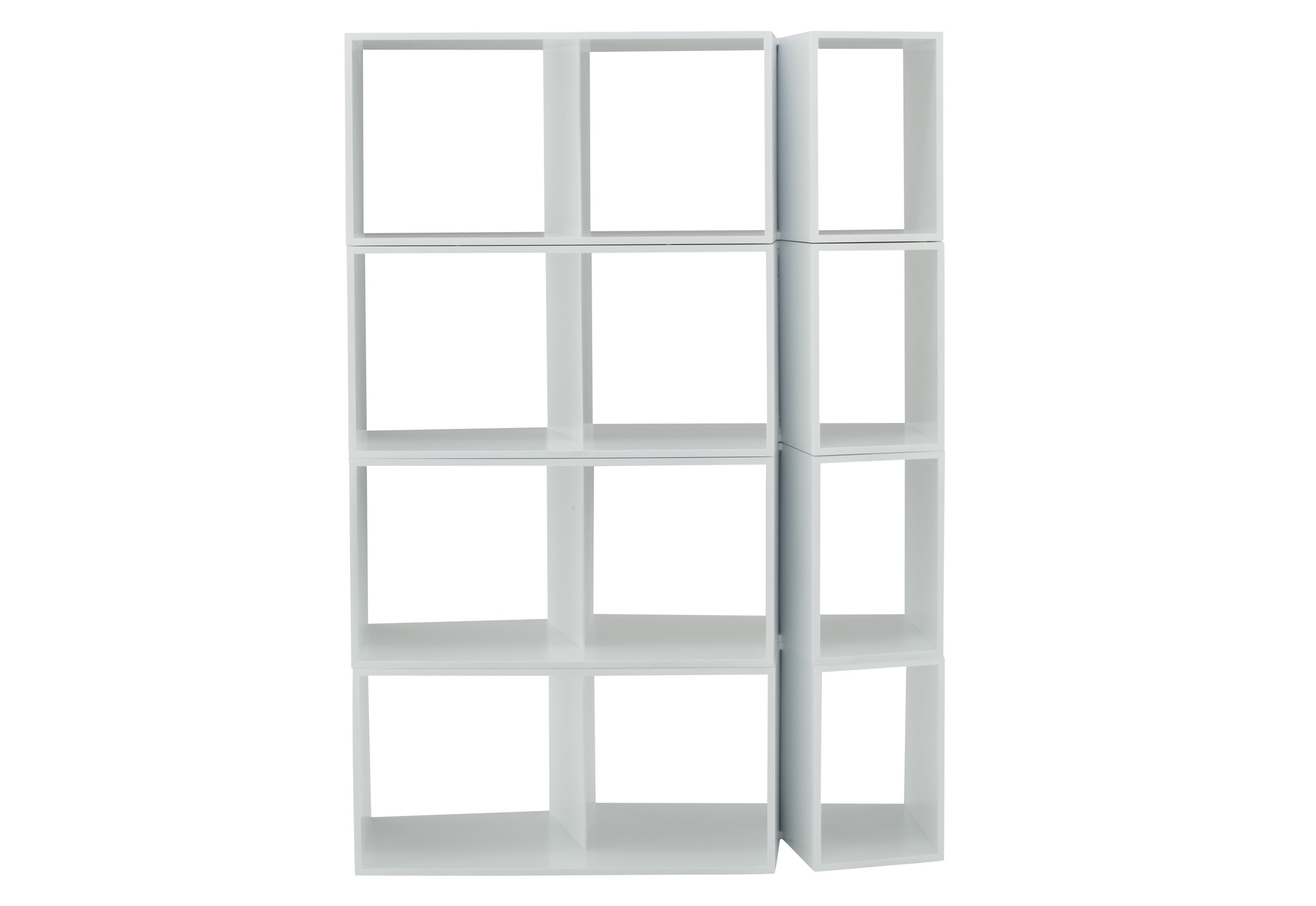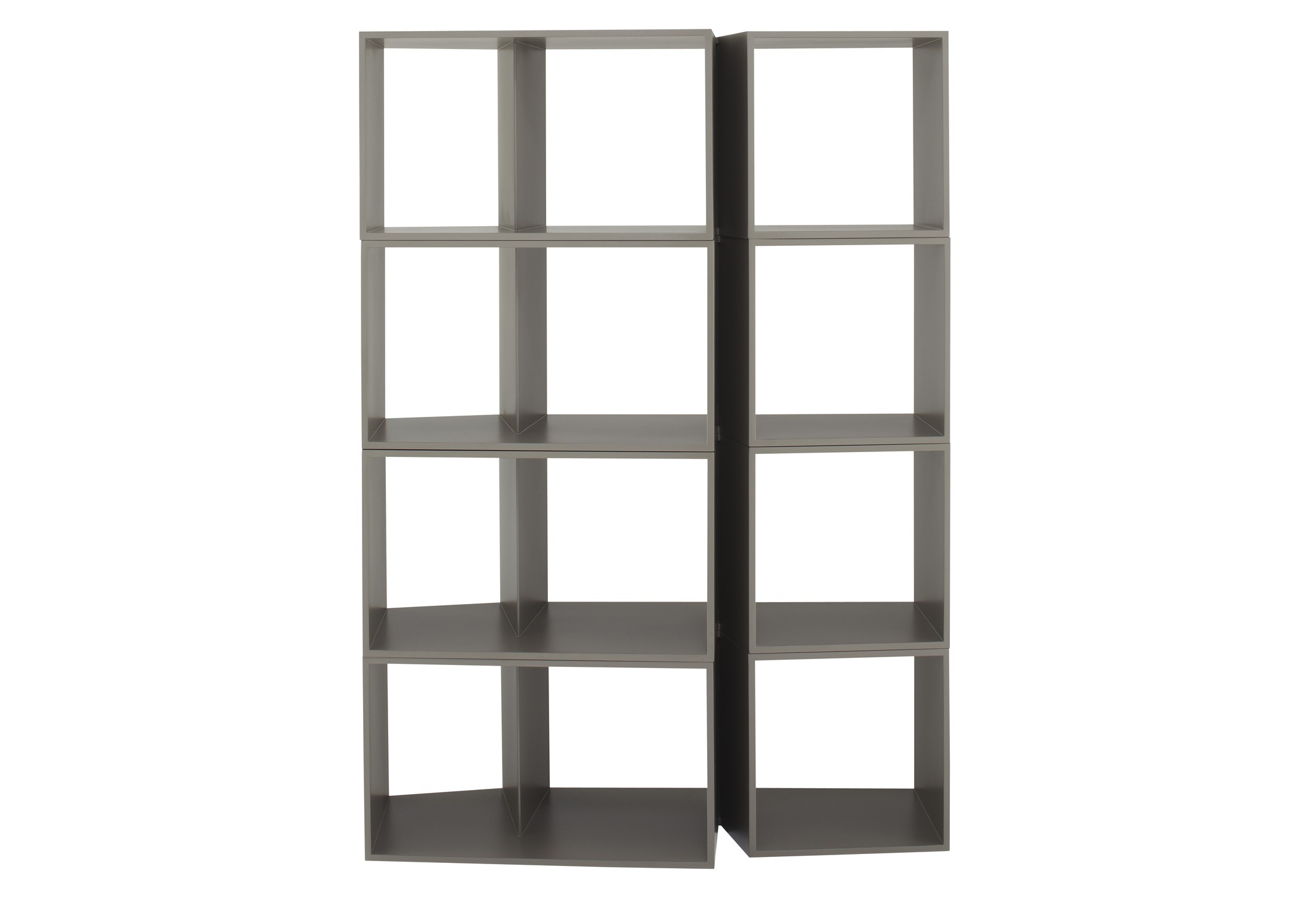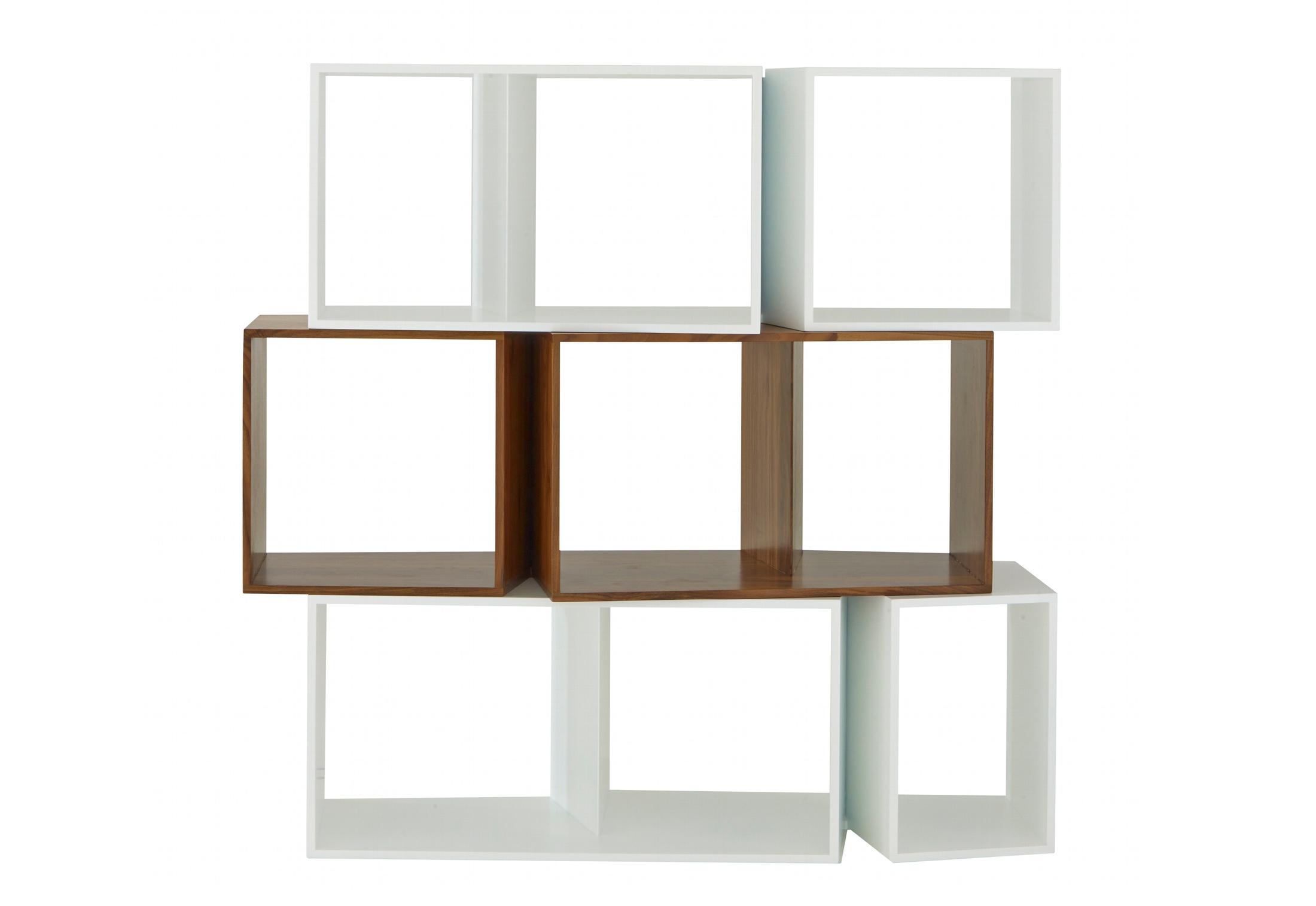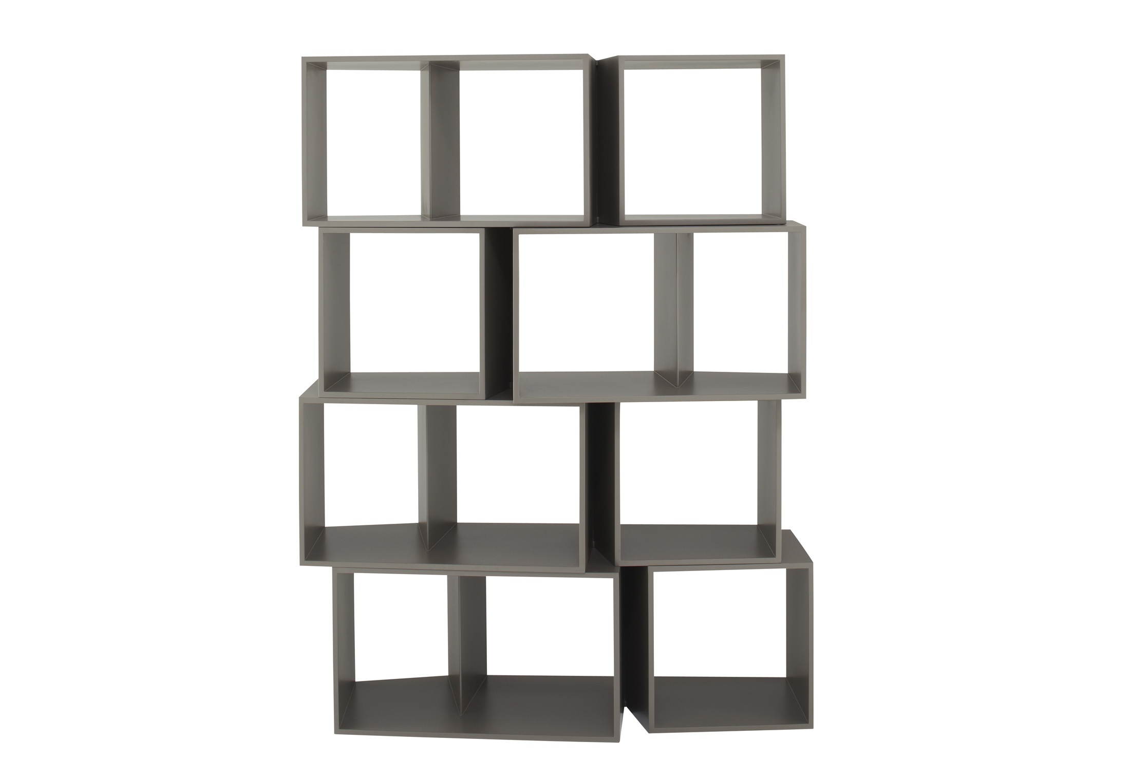 The bookcase CUTS from the Italian manufacturer Ligne Roset. Double sided shelving has an asymmetric shape, tapering to the edges. Its maximum depth is 39,7 cm, but due to the fact that the sides at both ends of the same, can easily be put next several modules. Shelf height 36,4 cm perfect for the bookcase. These models are stackable and are placed close. You can make shelves from the required number of modules, placing them in random order. Due to its own weight (13 kg) and small strips modules will stick like glue. Can be fixed to the wall. Three colors: white, gray and dark - gray lacquer allow you to create color combinations.