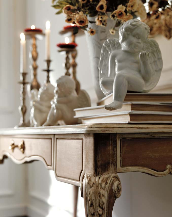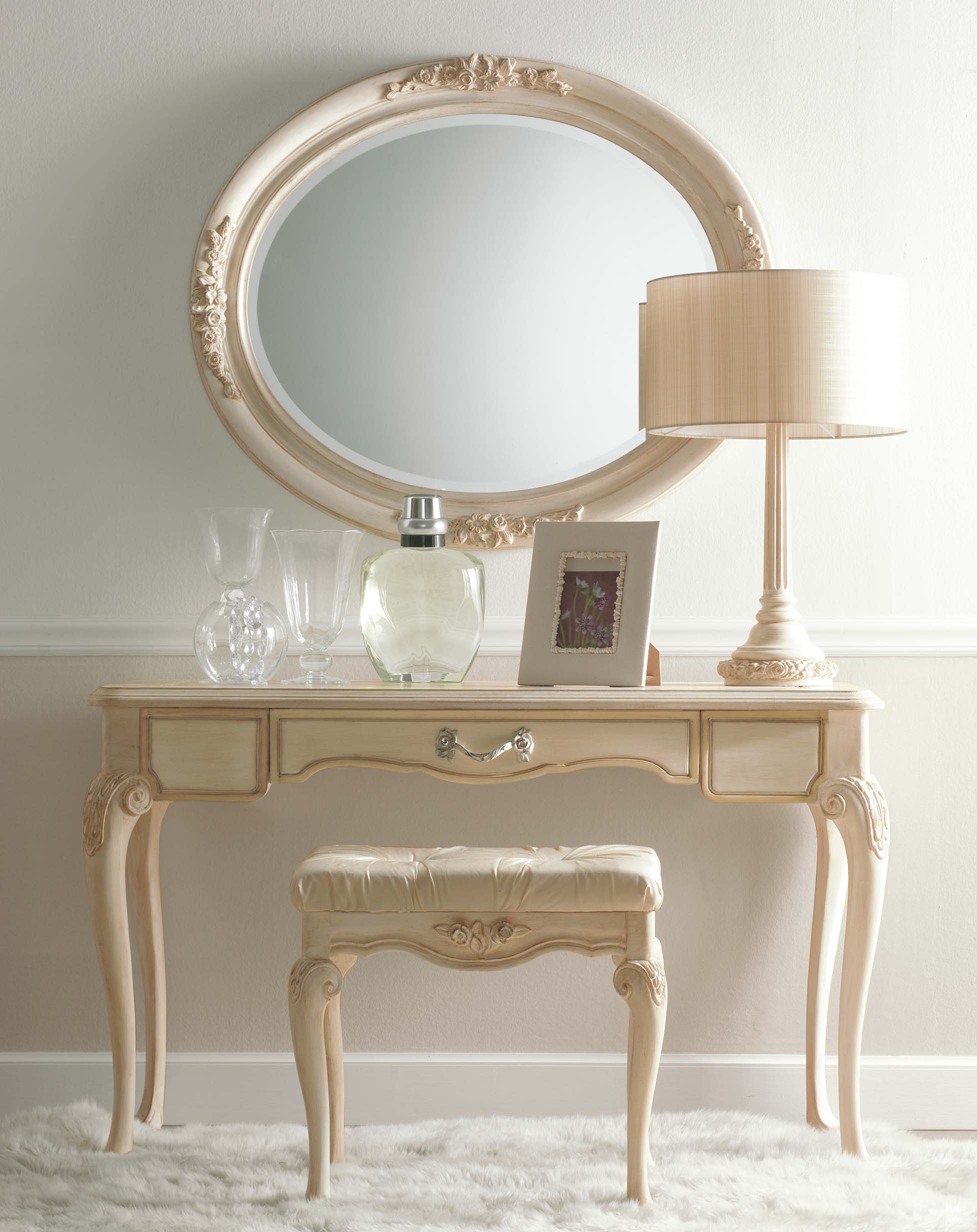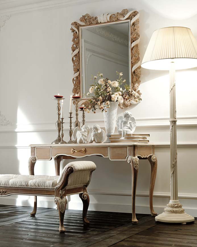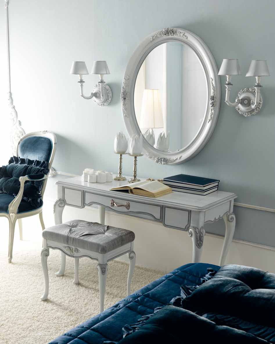 Vanity Ambiente Notte from the Italian manufacturer Savio Firmino. Frame made of solid wood. The coating varnish from the company portfolio. Accessories metal. The style of the model classic. Colours in stock. The model is equipped with a drawer. Decorative carved elements are the decoration of the product.
