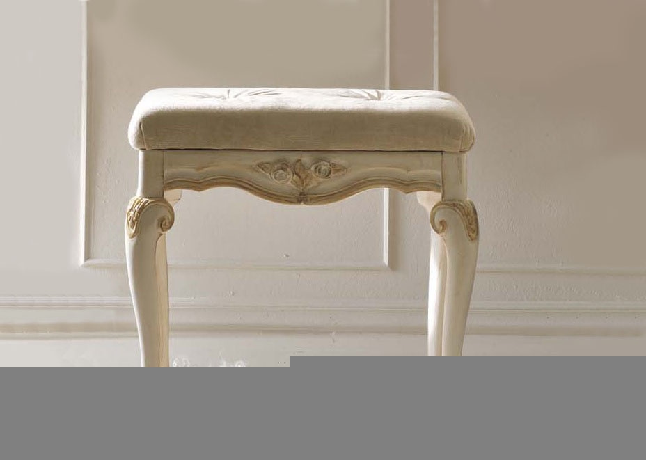 Bench Ambiente Notte from the Italian manufacturer Savio Firmino. Frame, legs made of solid wood. Upholstery - textiles from the company portfolio. The surface of the frame and legs are lacquered, and artificially aged. Colours in stock. Decorative carved elements are a colourful addition to products. The style of the model classic. The bench will perfectly complement the dressing table from the same collection.