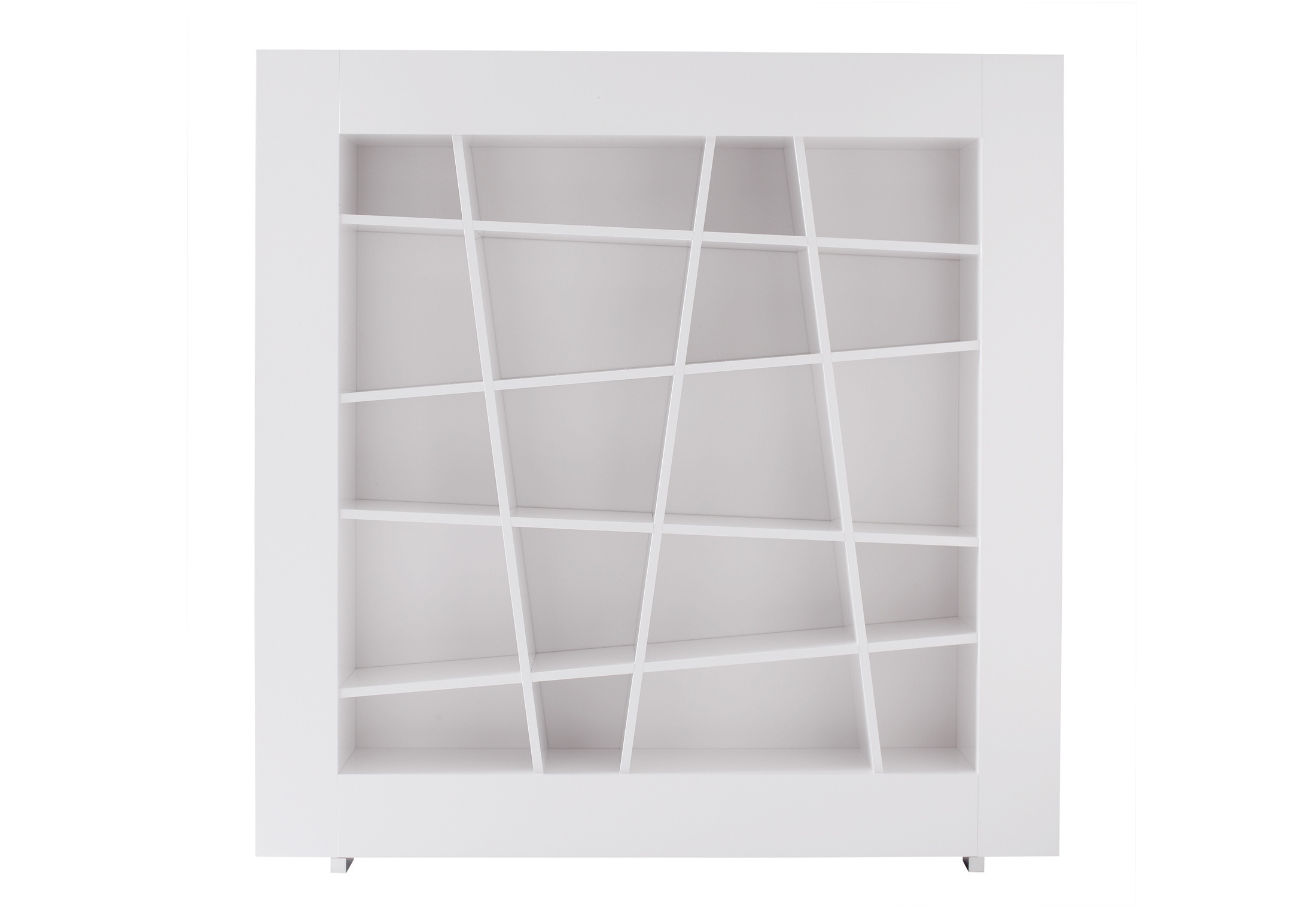 The bookcase LINES from French manufacturer Ligne Roset. The case is natural wood. The surface is varnished in white. Unusual use of forms becomes acute due to the sharp contrast between external cubic proportions of the models and their surfaces, which are characterized by numerous lines that intersect themselves. The model is made in modern style.