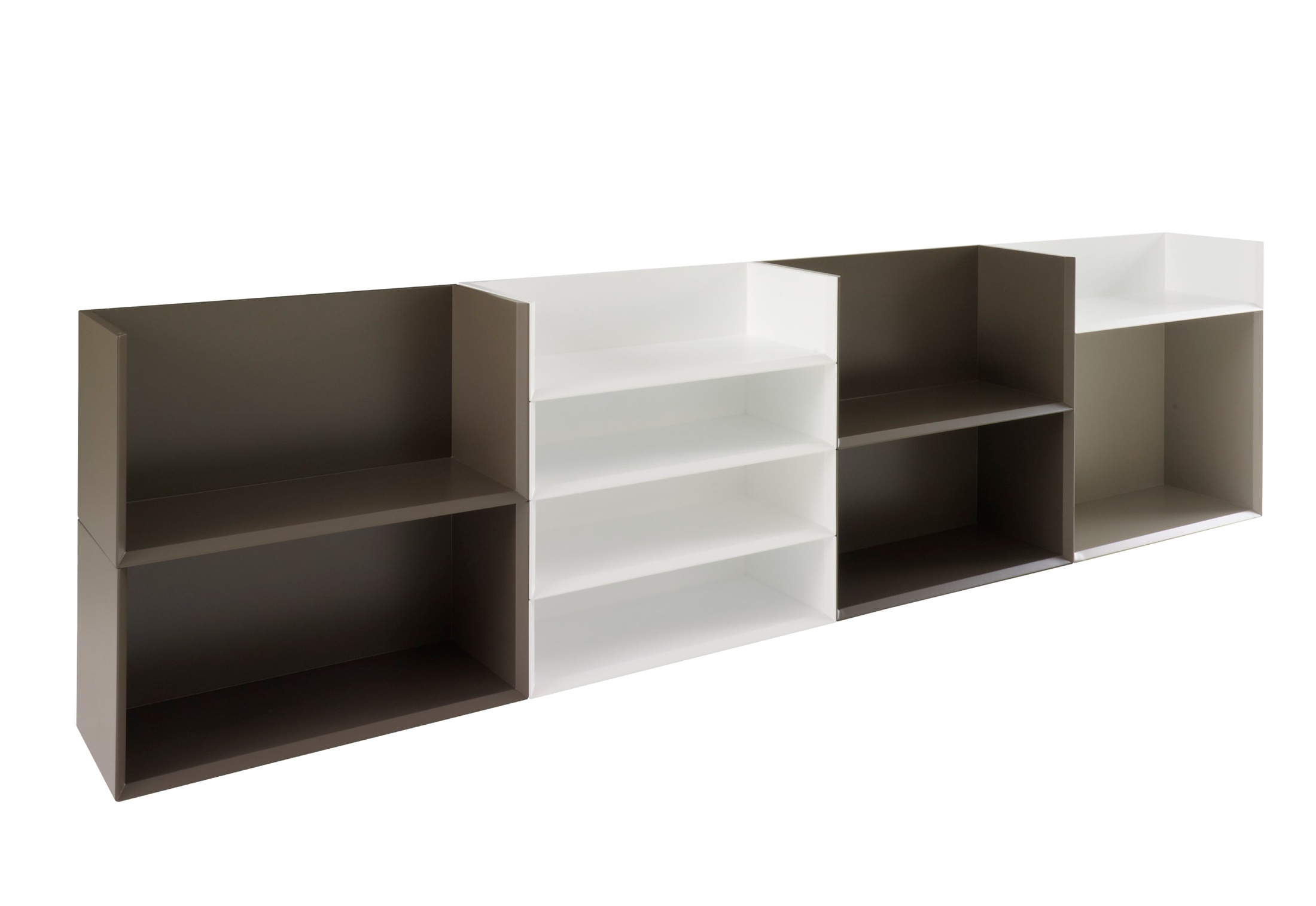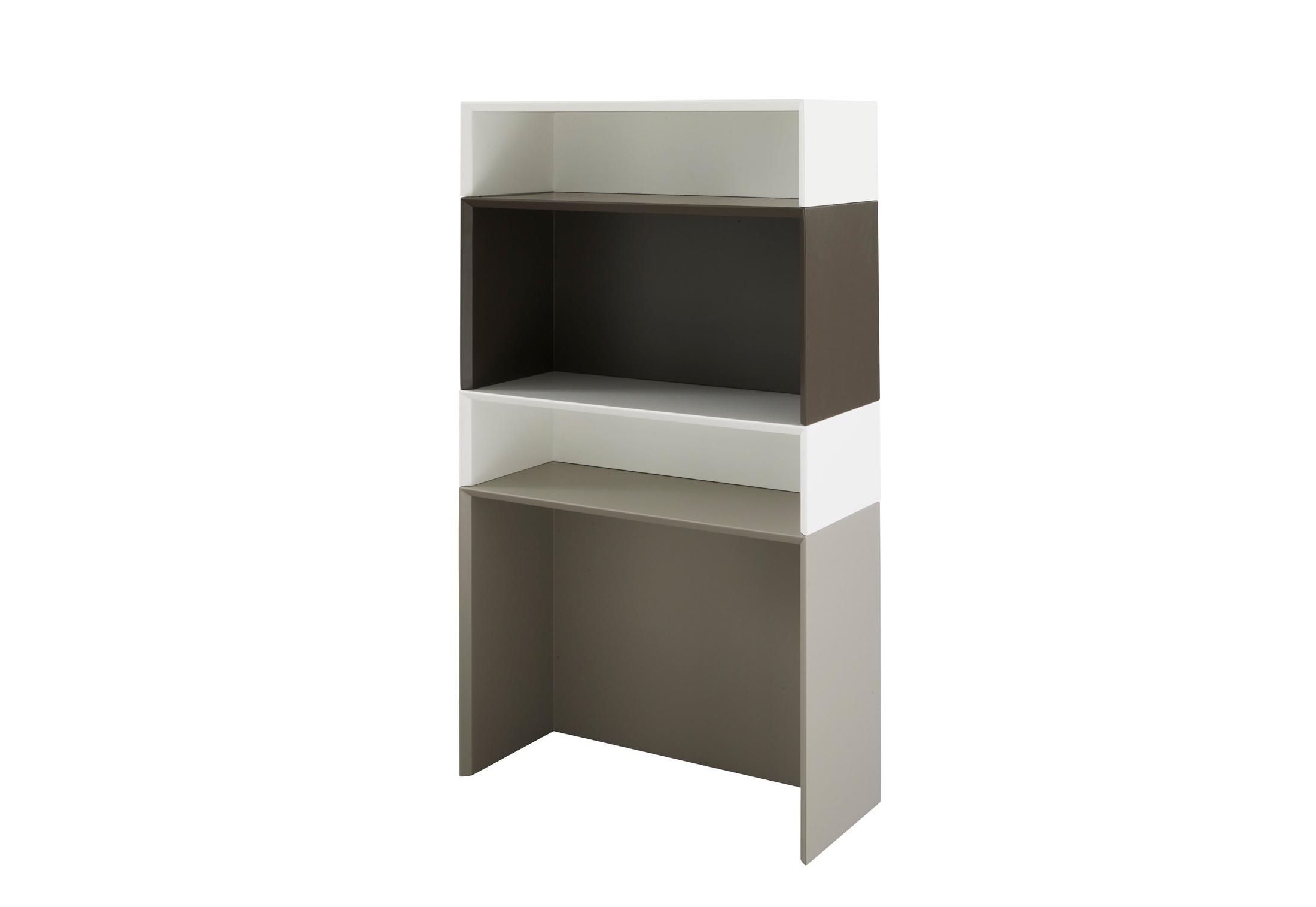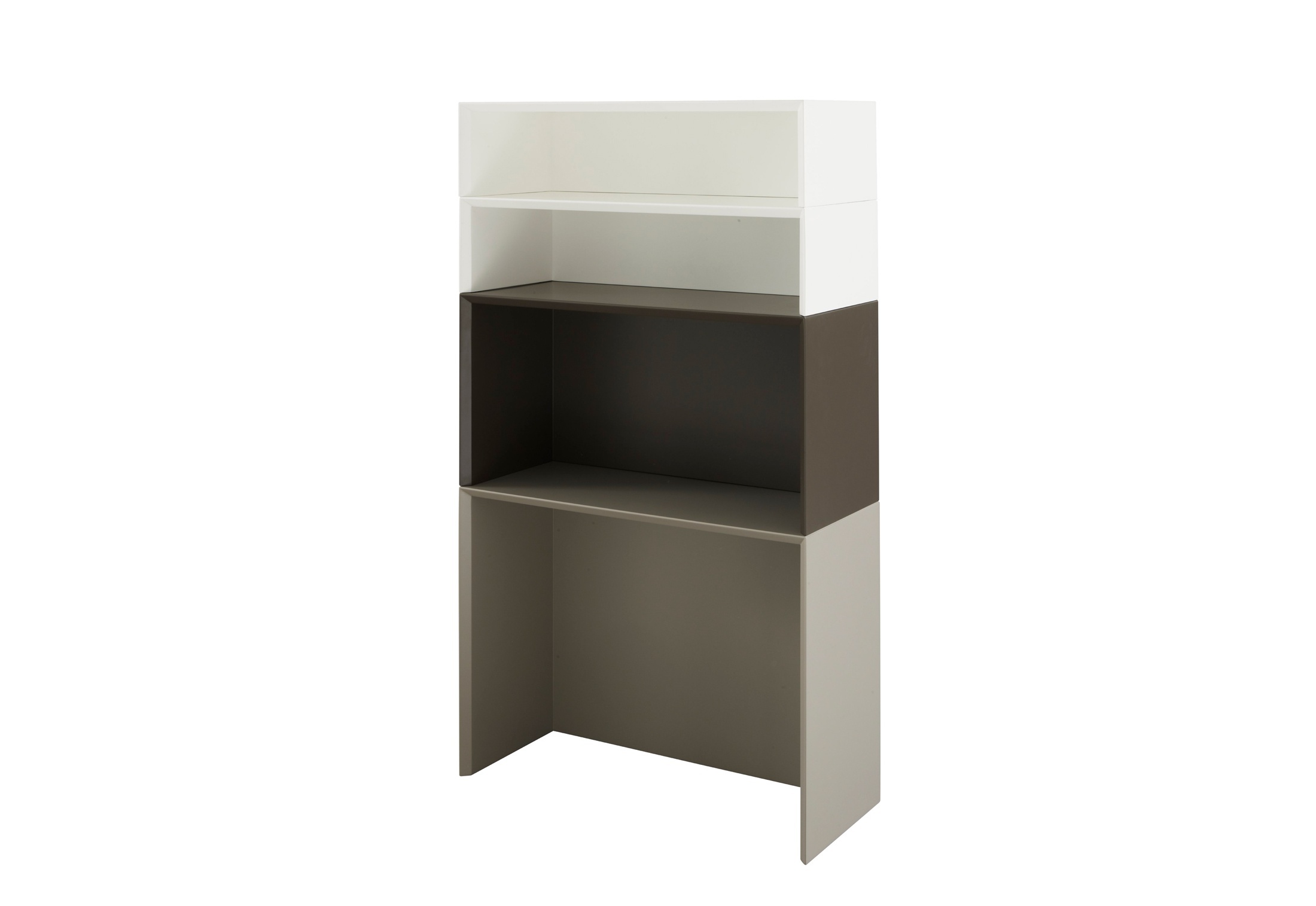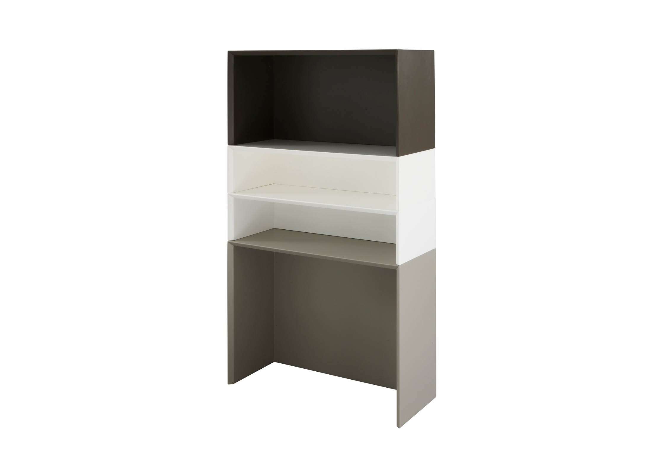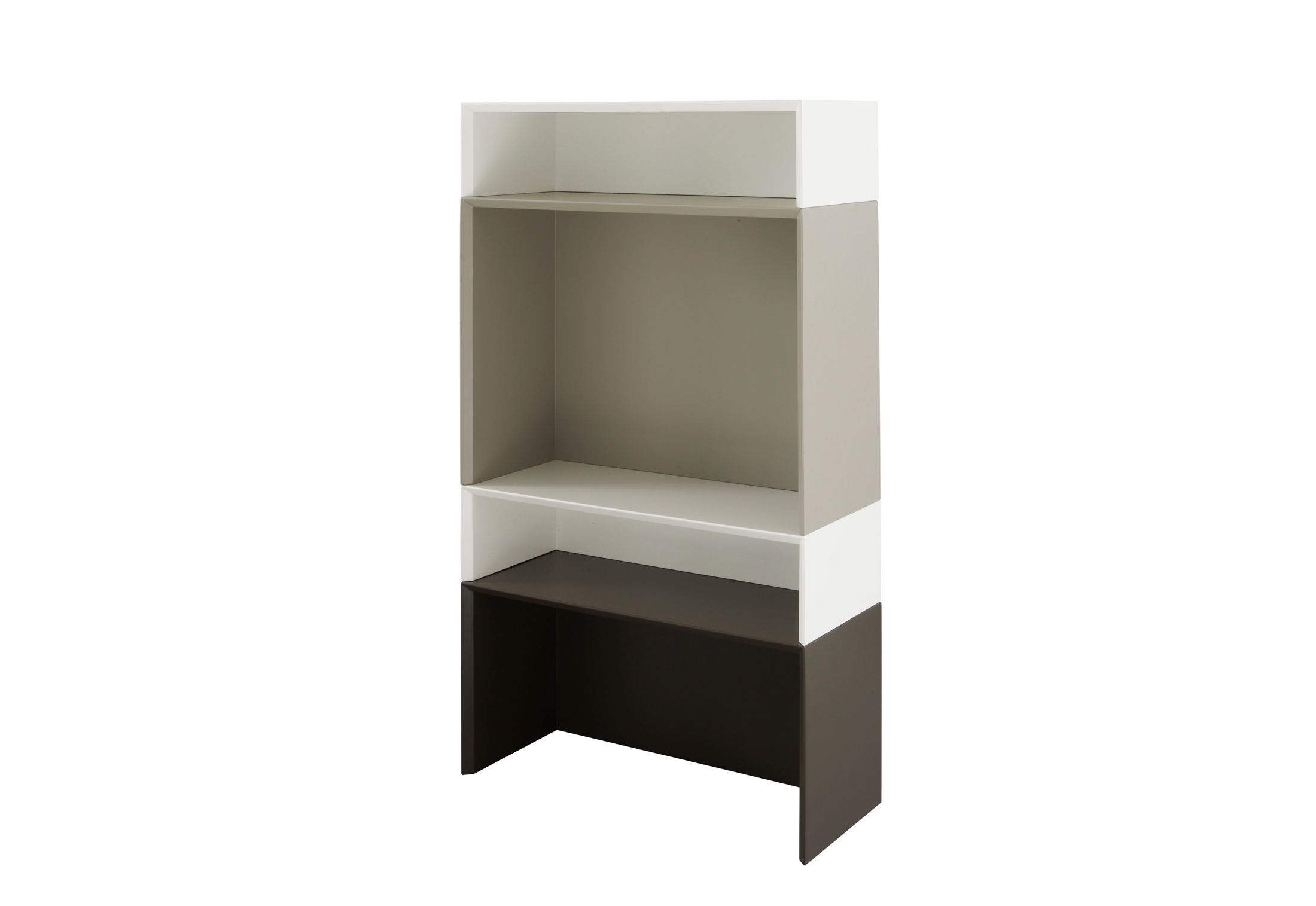 Modular storage system from TRICOLORE French manufacturer Ligne Roset. Thanks to three elements that can be set on each other, opening unlimited possibilities for creativity. You will be able to create a variety of pieces of furniture: vertical or horizontal, narrow or wide, high or low. This elegant shelf elements can easily be connected together with small metal pins. Shelves available in three colors: small element in white lacquer, the average item elephant-grey shade, and a large shelf with a clay gray color. The model is made in modern style.