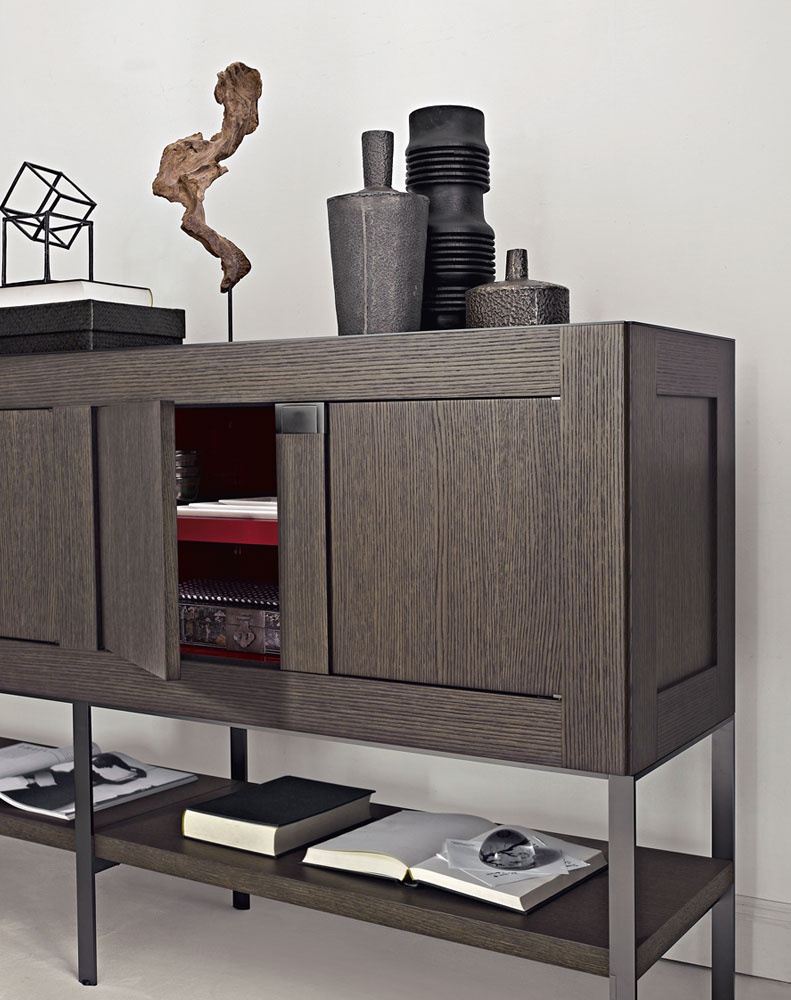 Cupboard Eracle from the Italian manufacturer Maxalto. Body: solid wood, MDF, veneer wood (walnut or oak). Legs from steel and plastic. Colours in stock.