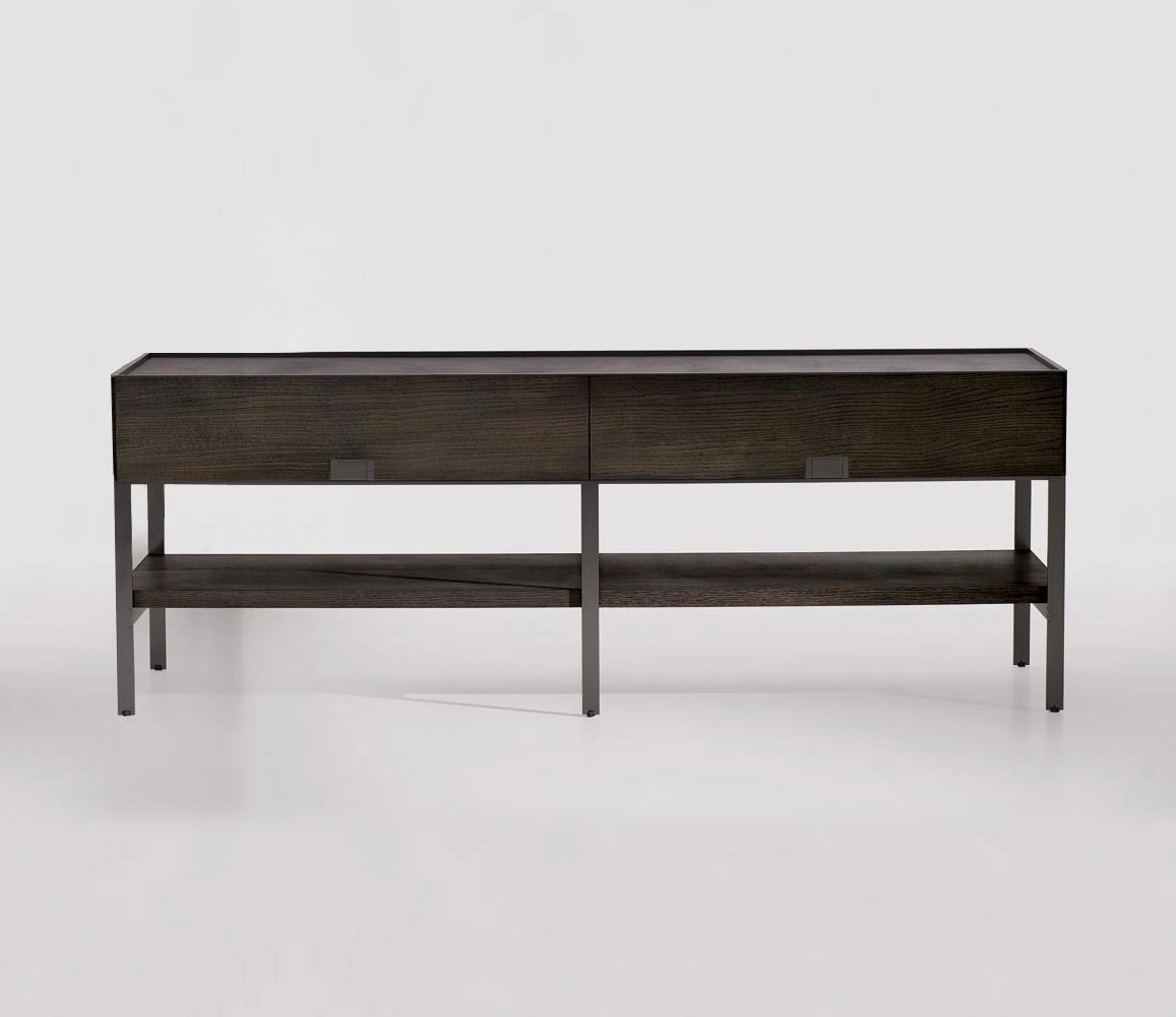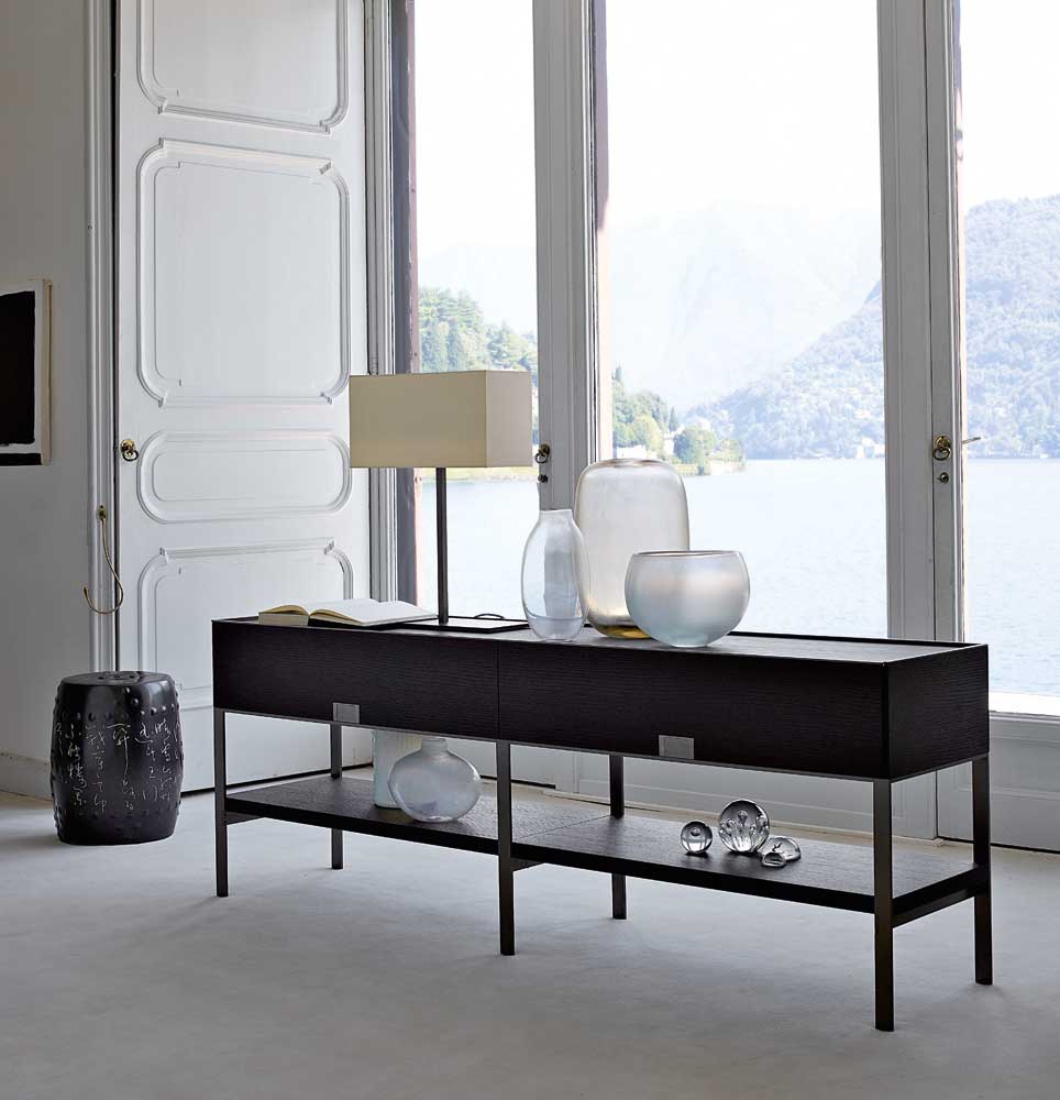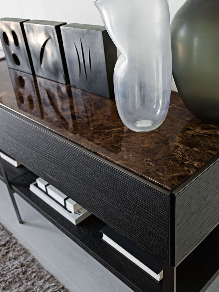 Eracle console from the Italian manufacturer Maxalto. The body is made of solid wood, MDF and veneer wood (walnut or oak). Top of marble. Legs of steel, ferrules plastic. Colours in stock.