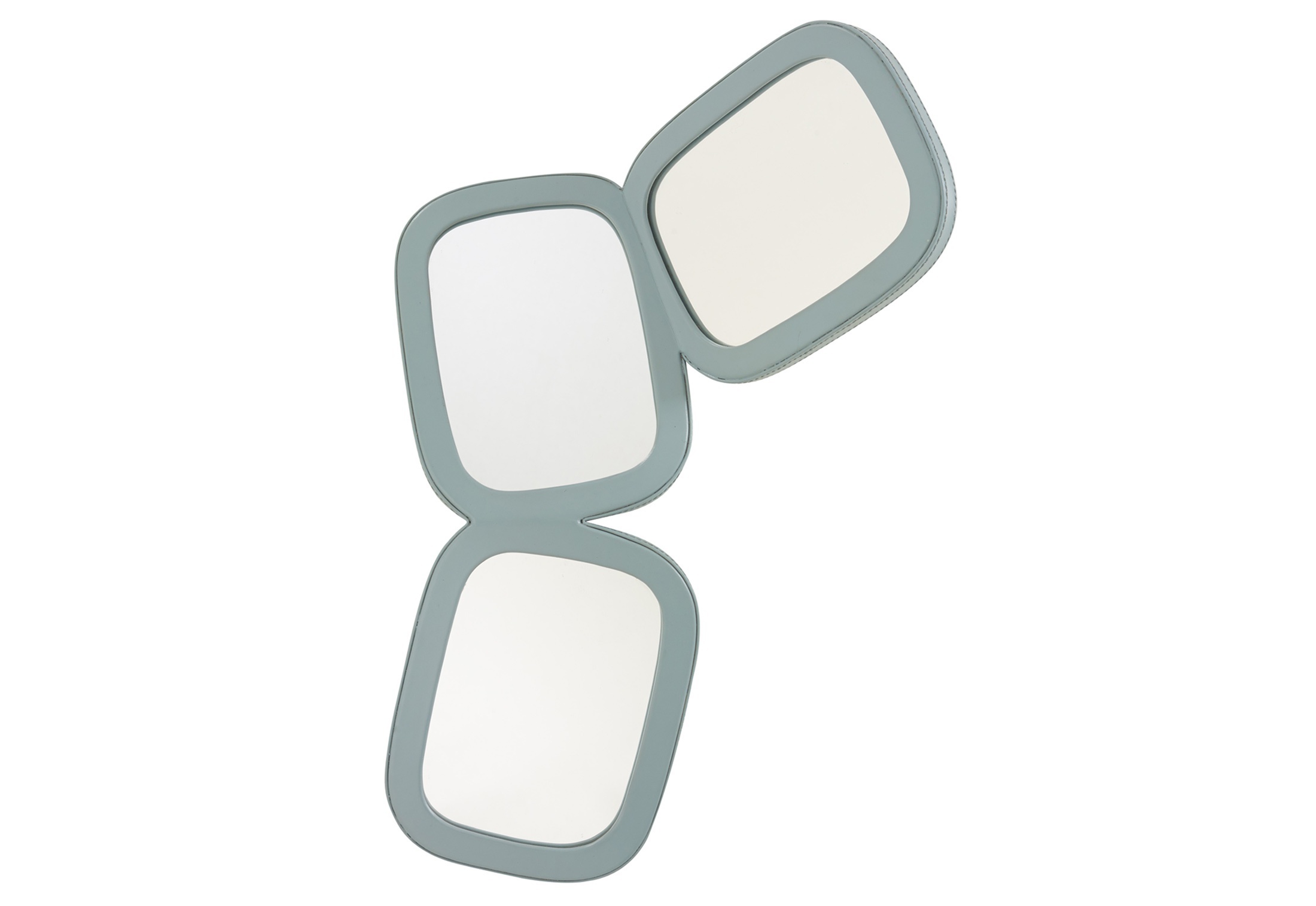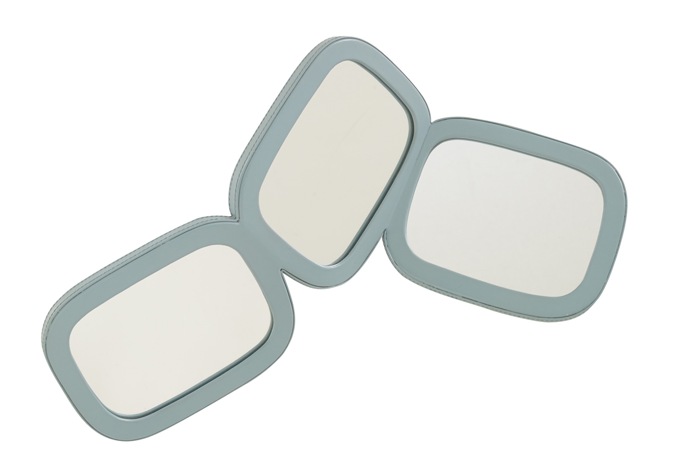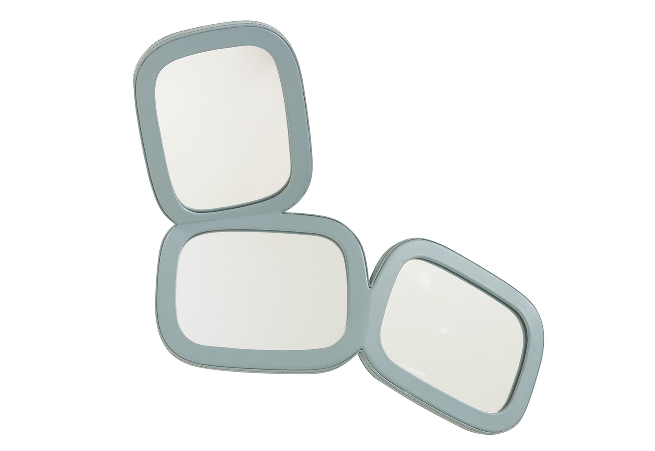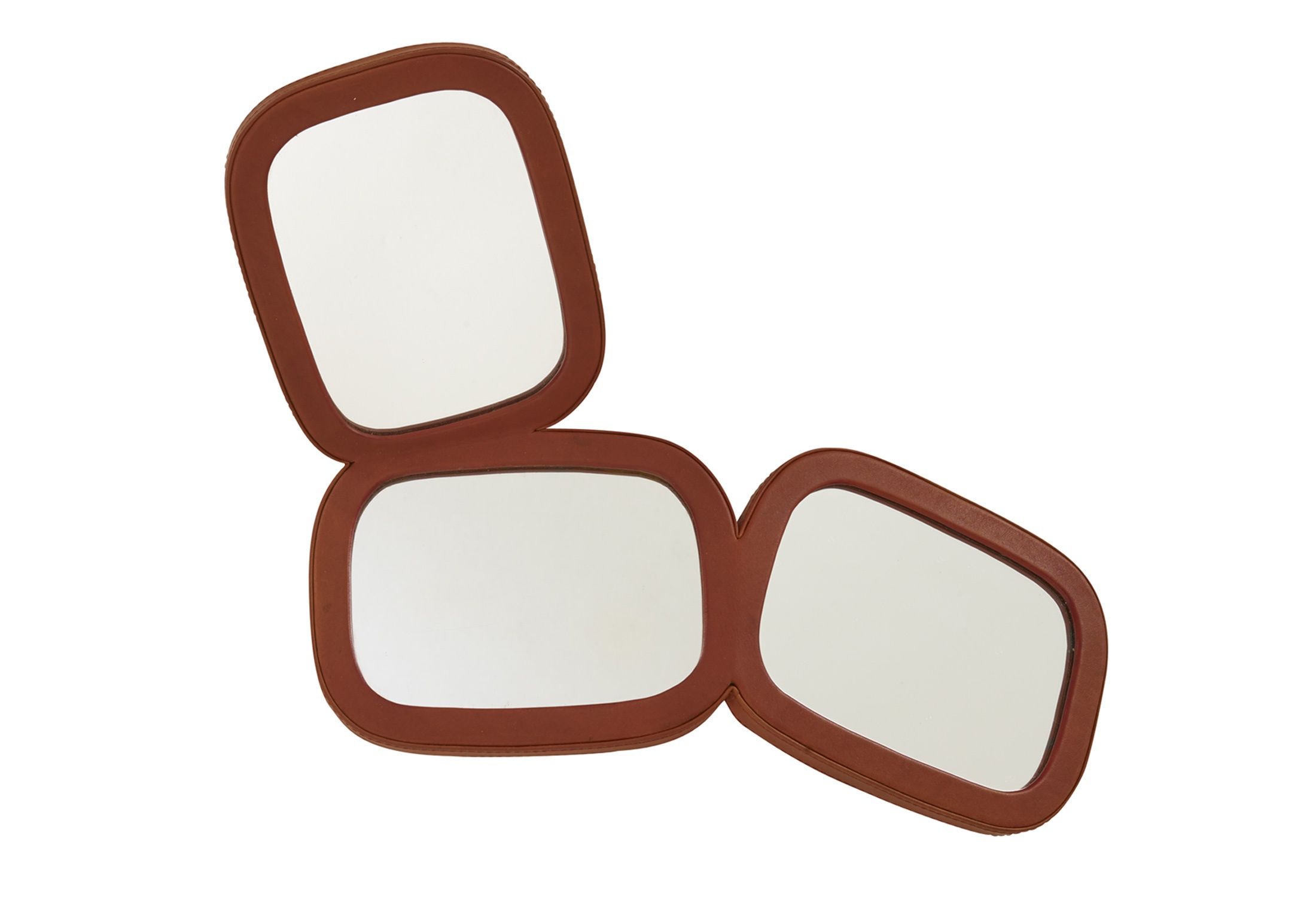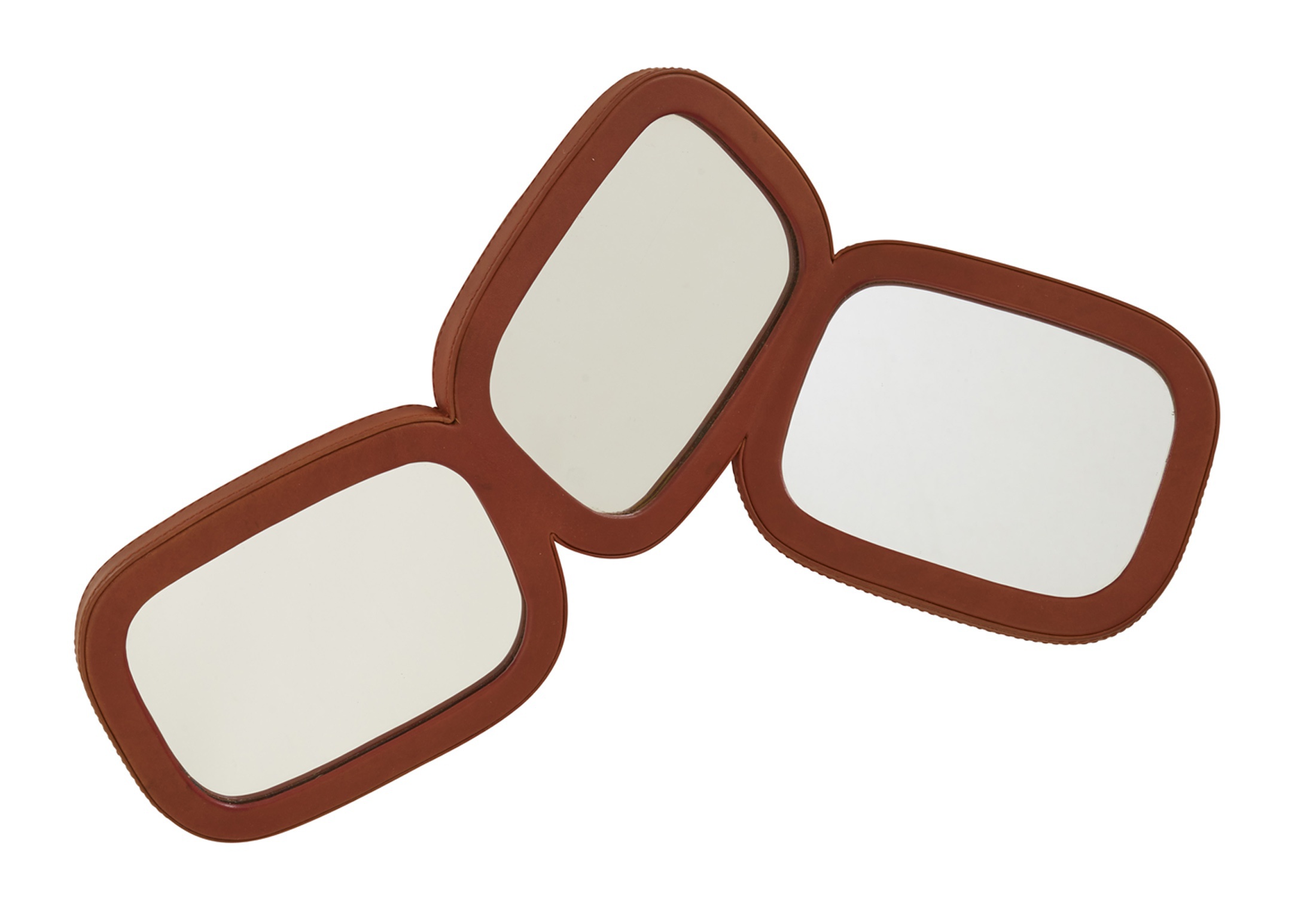 Wall mirror OPONCE from French manufacturer Ligne Roset. The mirror consists of three car rear view mirrors with the basis of MDF, covered with leather with decorative stitching. This project, which stands on the border between car and house, combines organic forms and sensual skin. The model is made in modern style.