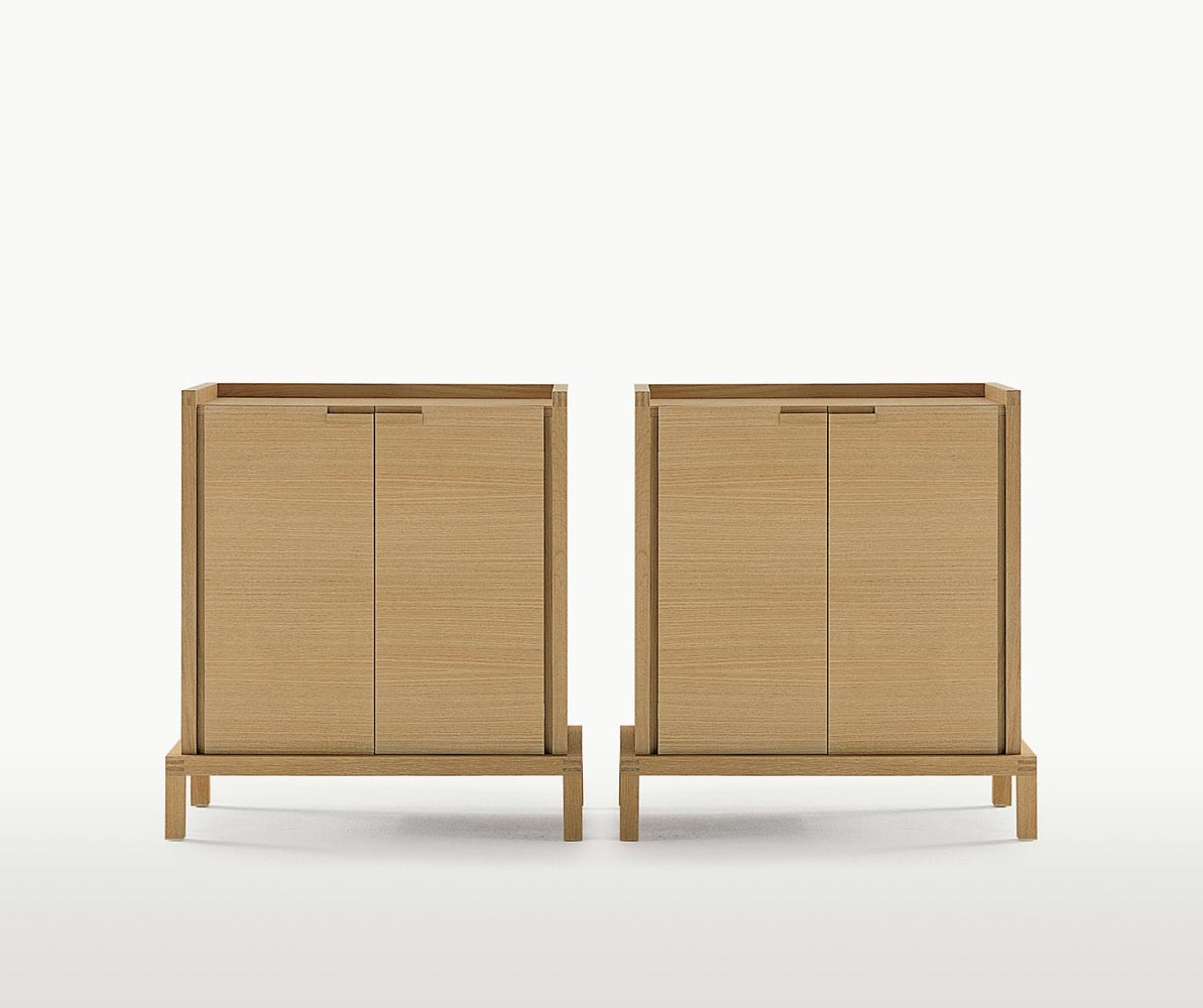 Cabinet Gemina from the Italian manufacturer Maxalto. The body is made of solid wood and wood veneer. Legs: chromed or painted steel, with plastic ends. Colours in stock.