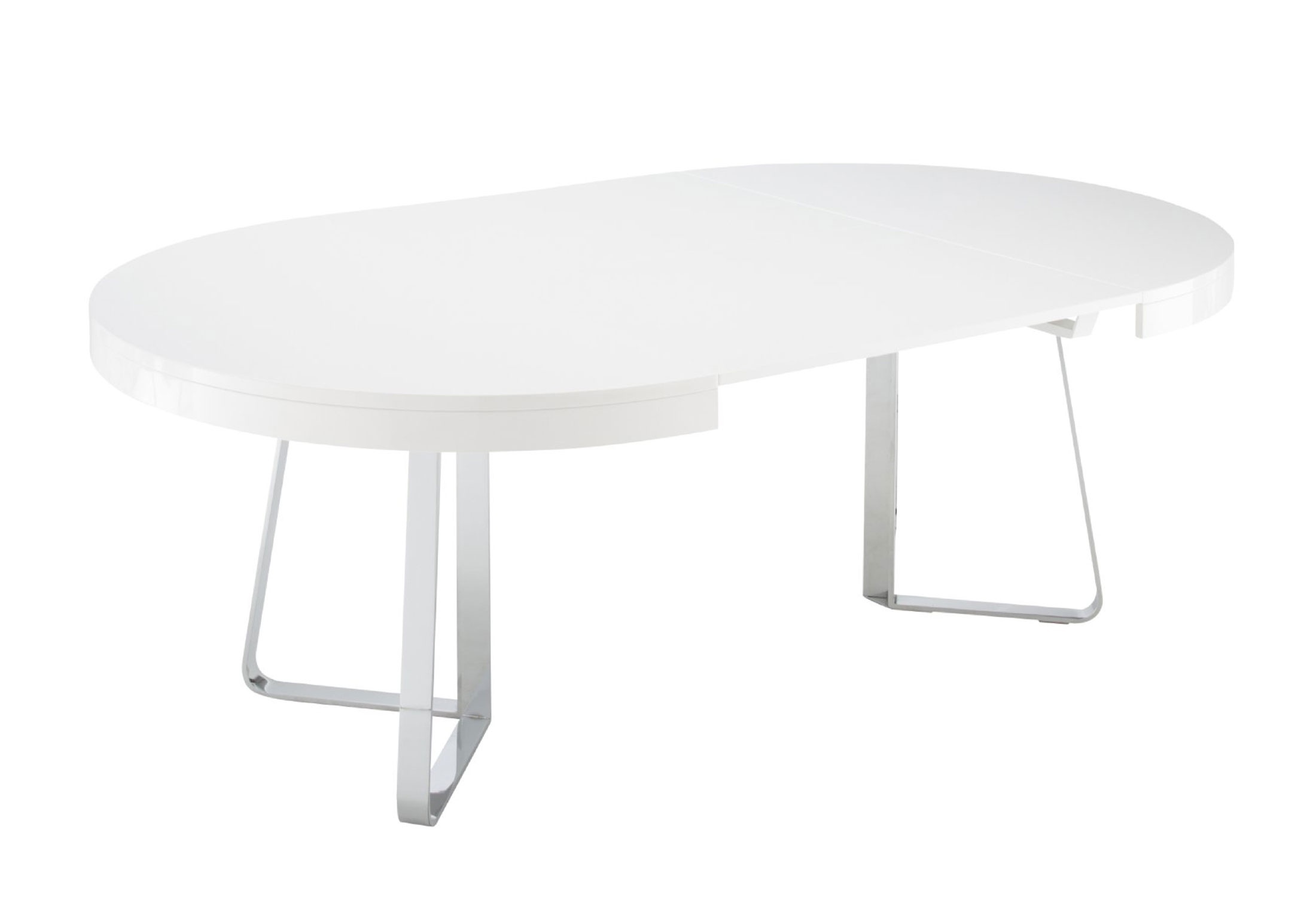AVA dining table from French manufacturer Ligne Roset. Wooden table top covered with glossy white lacquer, Matt lacquer beige, clay - elephant grey tones or the finishes of oak veneer shade ebony finish or walnut veneer. The model is made in modern style.