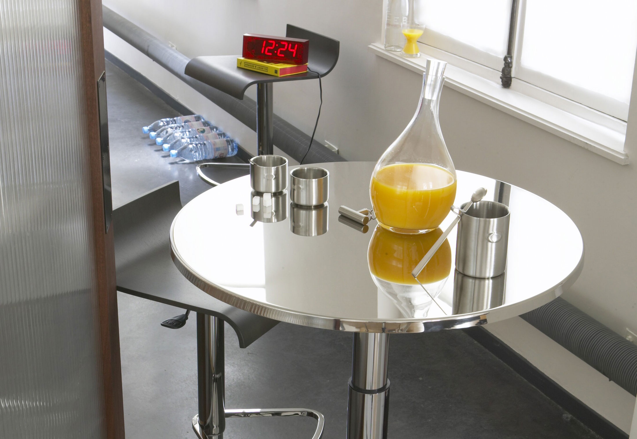 leg: chrome-plated steel countertop: glass |