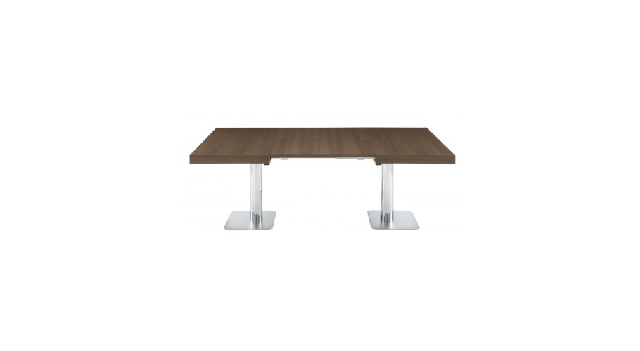 Dining table CRAFT from French manufacturer Ligne Roset. The sliding table on the basis of chrome steel. Countertop: oak, stained ebony, white, beige and clay grey and elephant grey lacquer, and now the nut. Folded can accommodate 6 people, in the spread of 8-10 persons. The model is made in modern style.