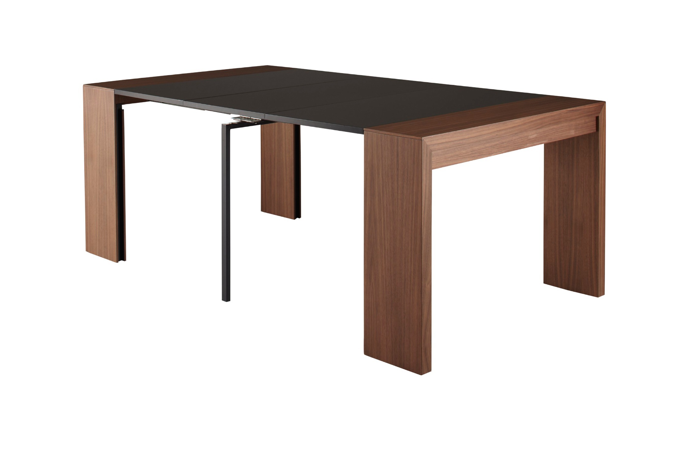 Dining table DOPPIO from French manufacturer Ligne Roset. The case of wooden panels coated with melamine. An additional panel of MDF. Two options of combinations: body in glossy white lacquer with panels in Matt white lacquer, or shell, covered with walnut veneer, with panels in black lacquer. The model is made in modern style.