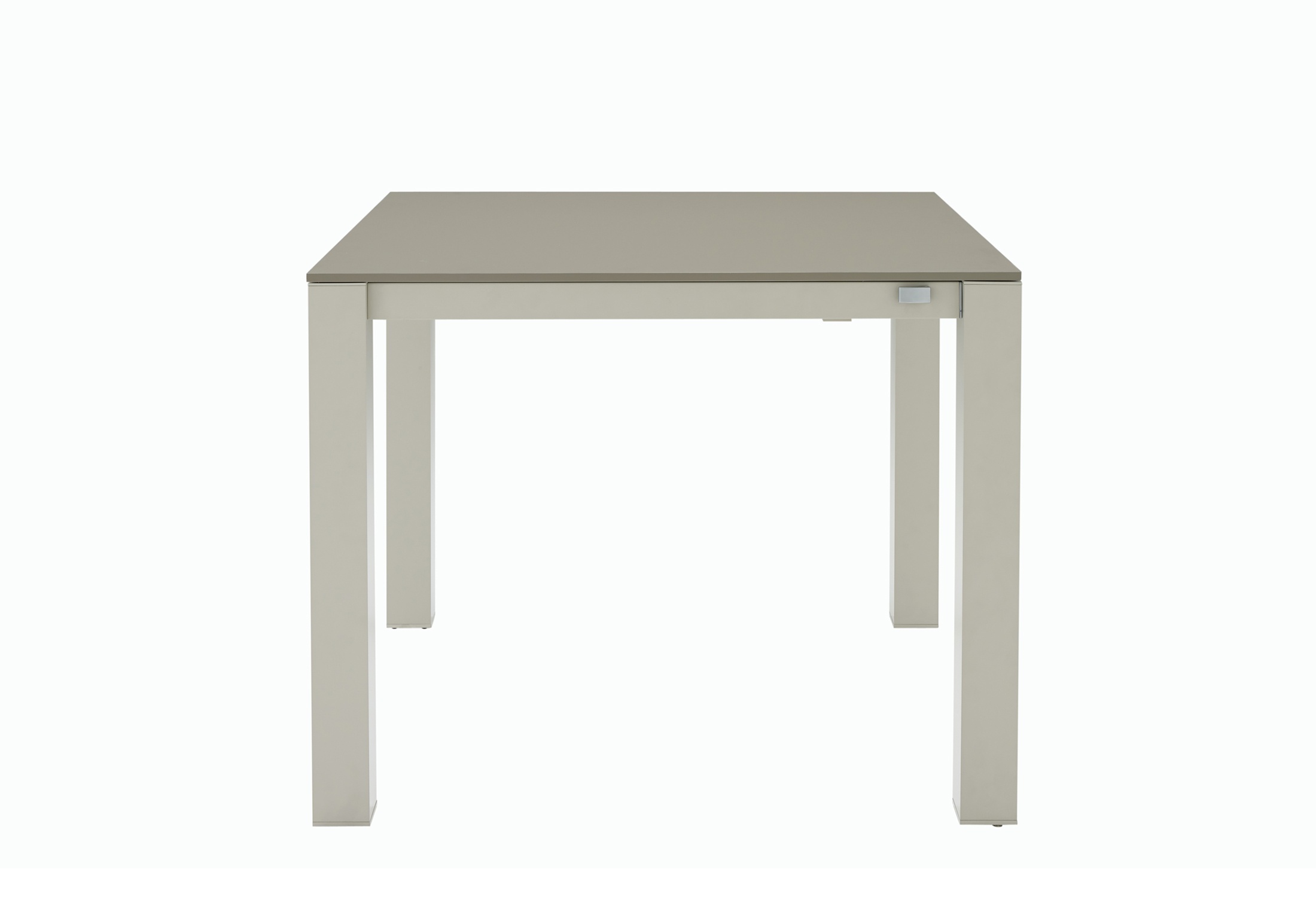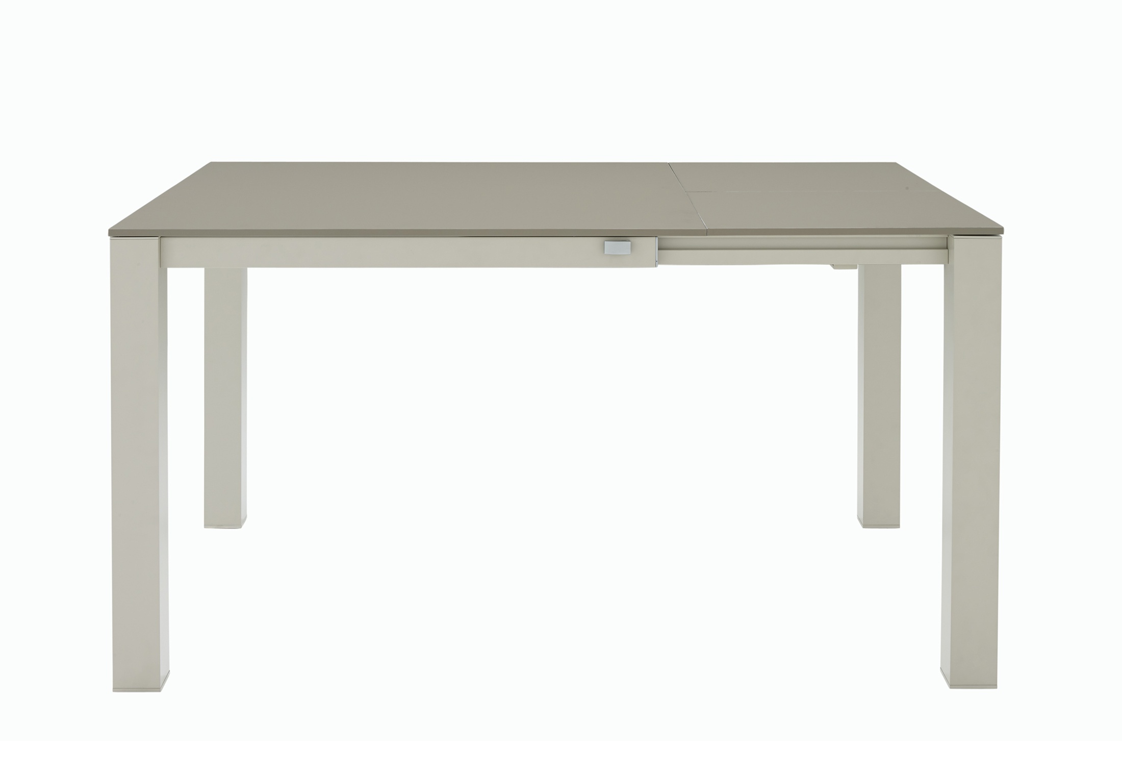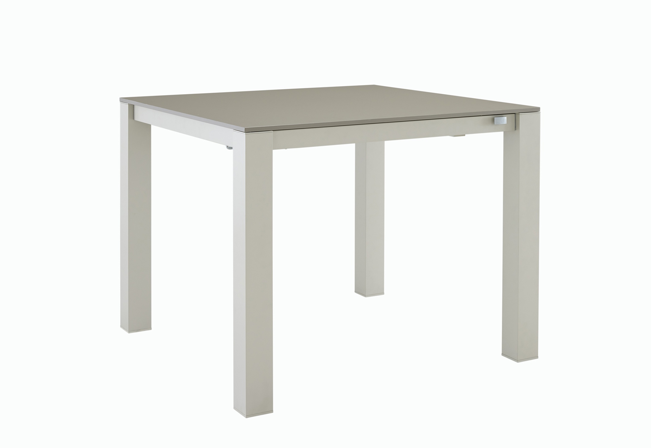 Dining table PIÙ GRANDE from French manufacturer Ligne Roset. Dining table with located inside additional panels, aluminium frame, lacquered. The main counter tops and additional panels made of composite material with a core of polyurethane foam, the upper and lower surfaces of aluminum covered with laminate. Nanotechnology laminate Fenix NTM. The model is made in modern style.