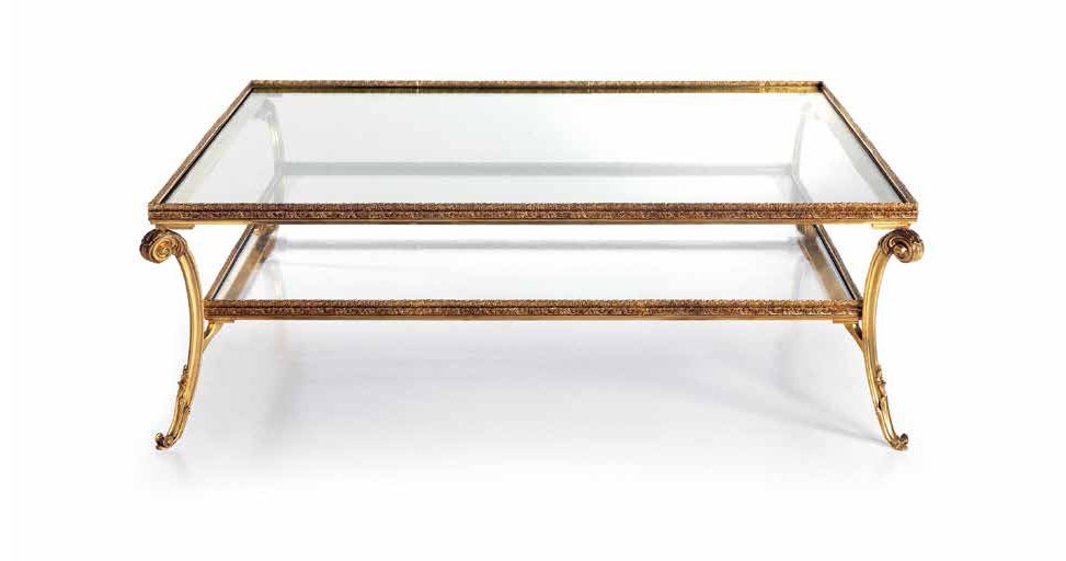 T106 coffee table/CV of the Italian manufacturer Zanaboni. The presented model coffee table with glass shelf and top in square shape. The color combination of Golden and transparent. Perfectly complement the interior in the Baroque style.