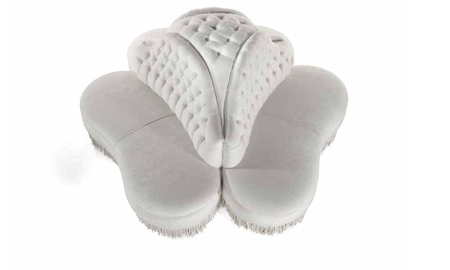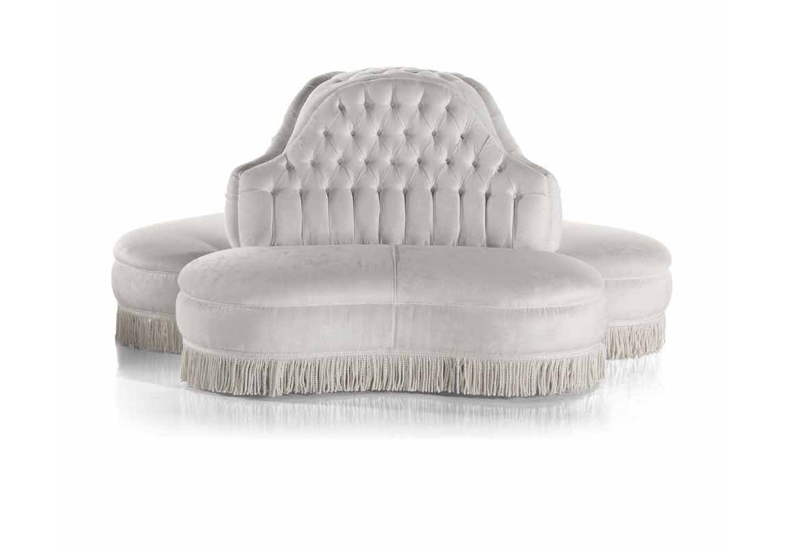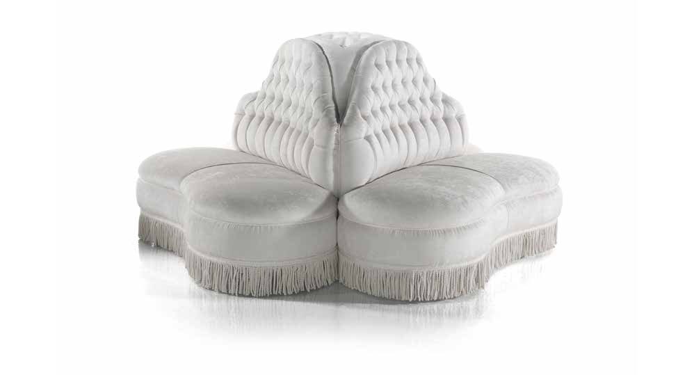 The Otello sofa round Italian manufacturer Zanaboni. Presents a model of six-seater sofa, figure shape. The sofa is fully upholstered in high quality fabrics in white tone. Decorated with stitch Capito. The perfect solution for interior living room or public spaces in a contemporary style.