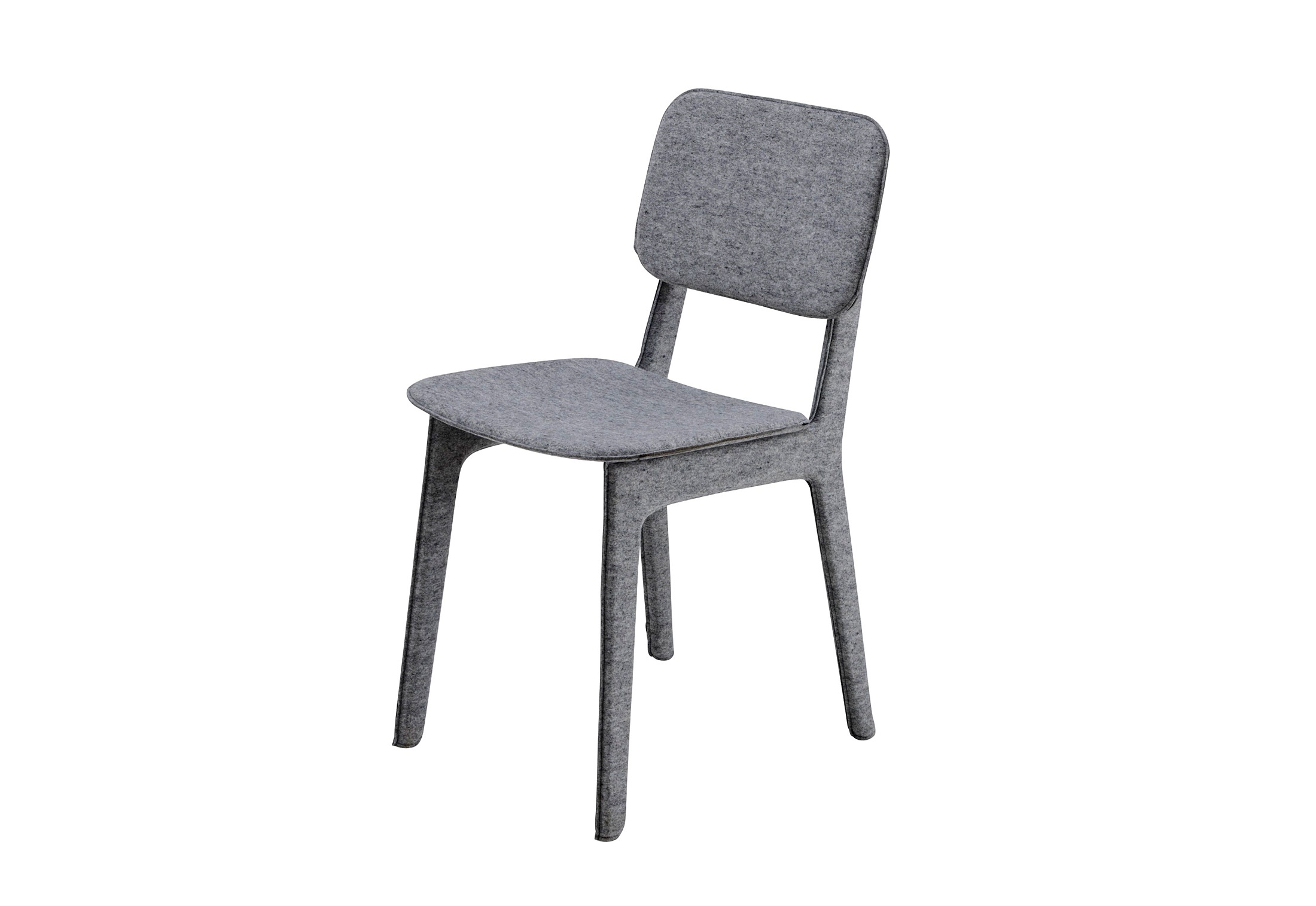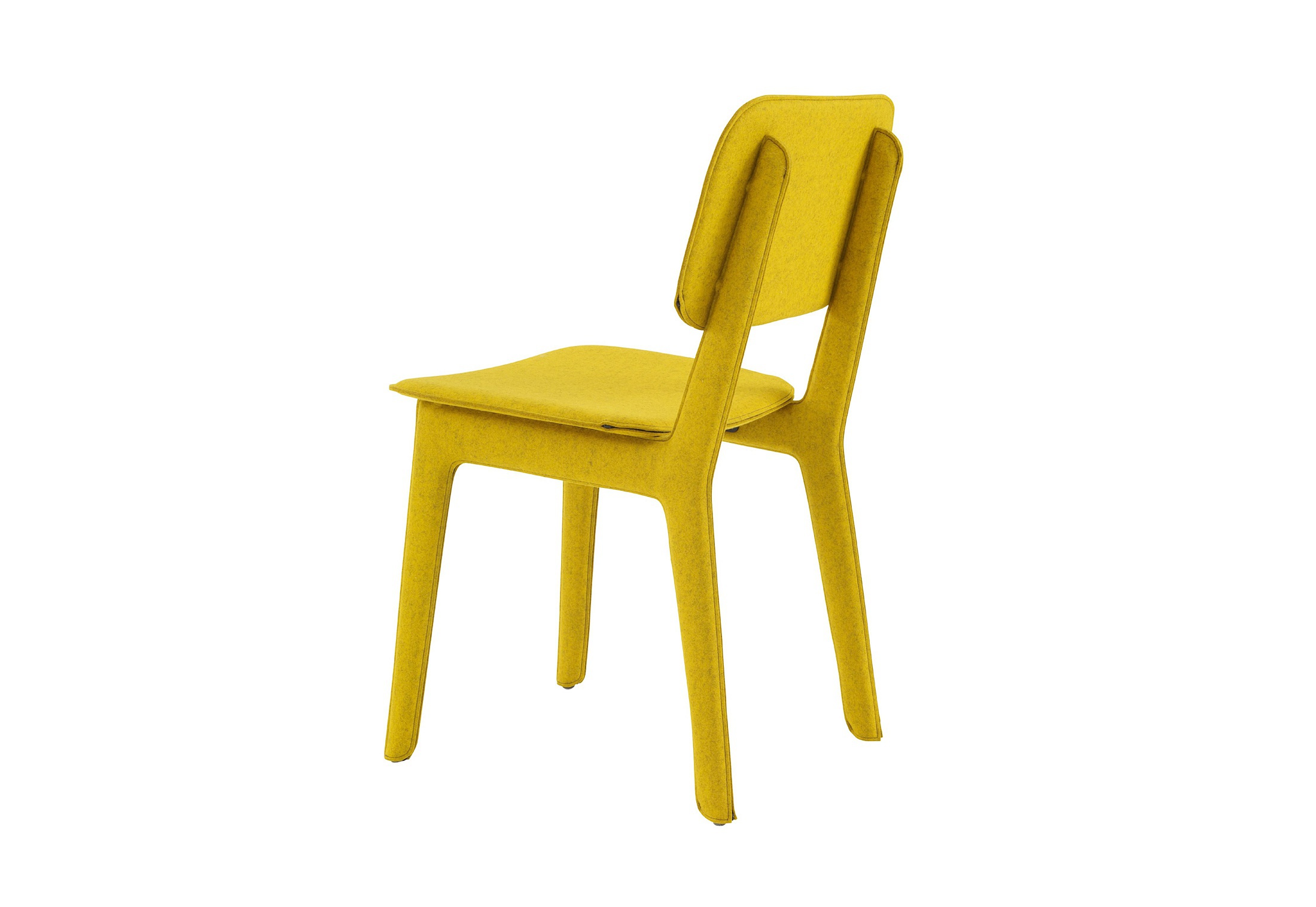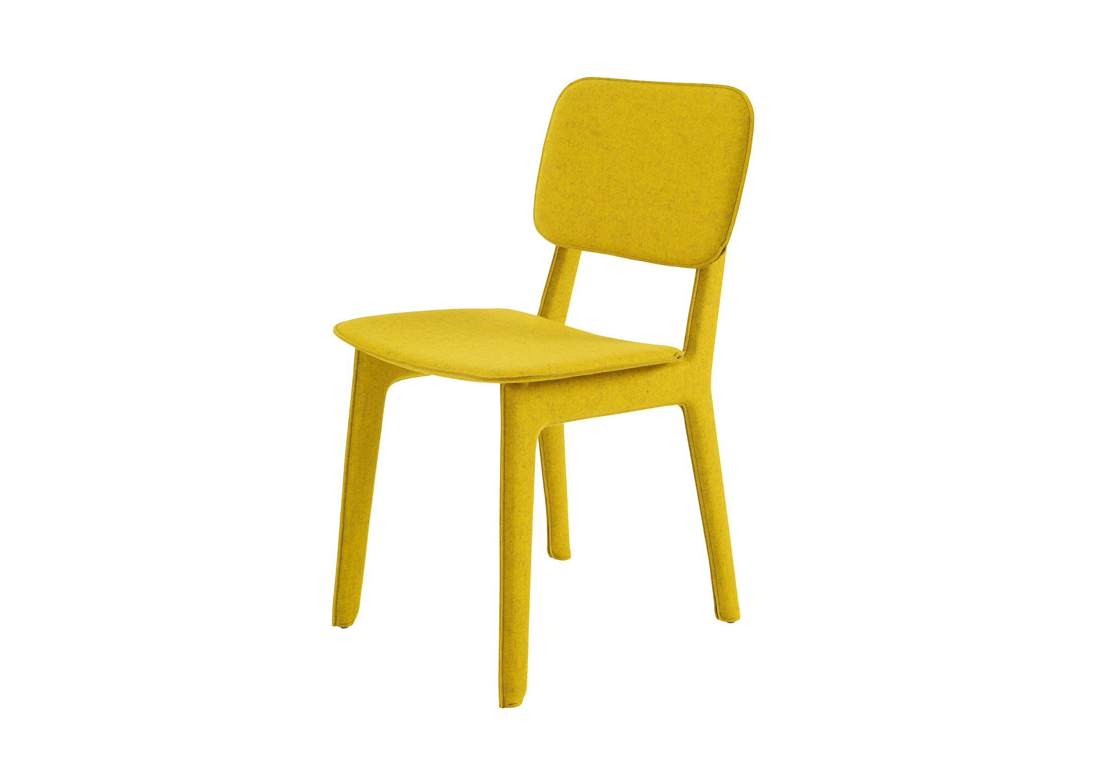 The FELT chair from French manufacturer Ligne Roset. Design characteristic of simplicity: elegant seat and backrest ergonomic shape are connected by screws with two delicately drawn profiles of the legs. Chair entirely upholstered in coloured felt, which gives it a balanced look. This material in addition to visual appeal has many functional advantages: he is very strong, resistance to changes temperature and humidity, anti-allergic, antibacterial, no static electricity. The model is made in modern style.
