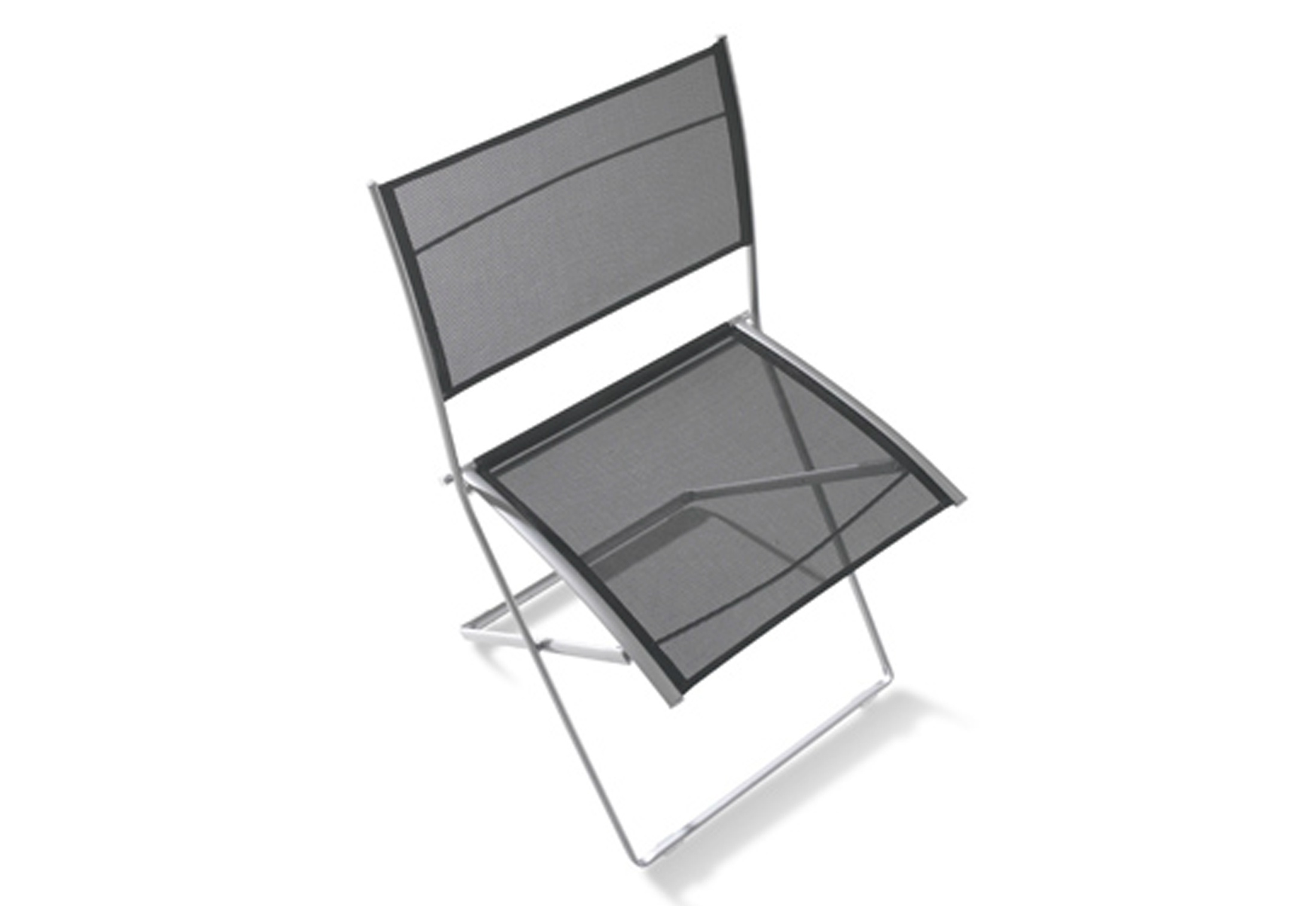 Chair PLI from French manufacturer Ligne Roset. Very comfortable and lightweight folding chair. Suitable for use both indoors and outside. The seat is made of mesh synthetic material, black or white. The model is made in modern style.