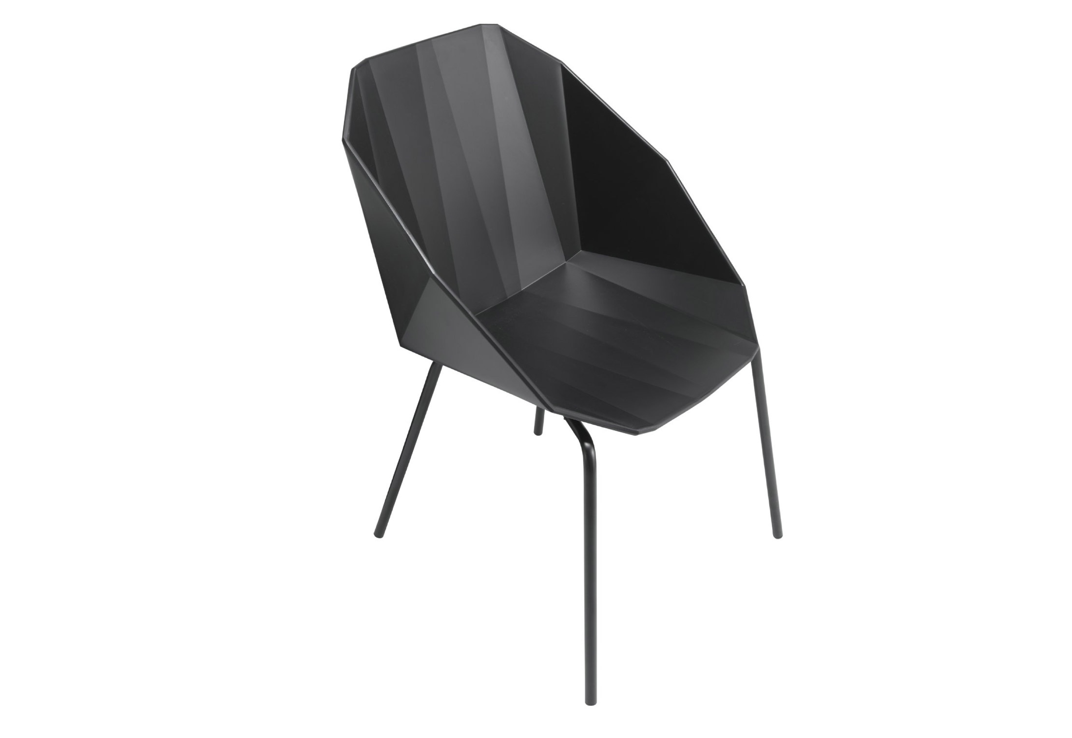 Chair ROCHER from French manufacturer Ligne Roset. Cup chair from the line is made of reinforced high-tech polymer. The shape of the Cup reminds the verge of a treated gemstone. Available colors: black, white and clay. Chair legs are made of chrome steel, can be black, white or clay colors depending on the shade of the bowl. The chair is also available with a soft pillow that repeats the internal contours of the bowl.